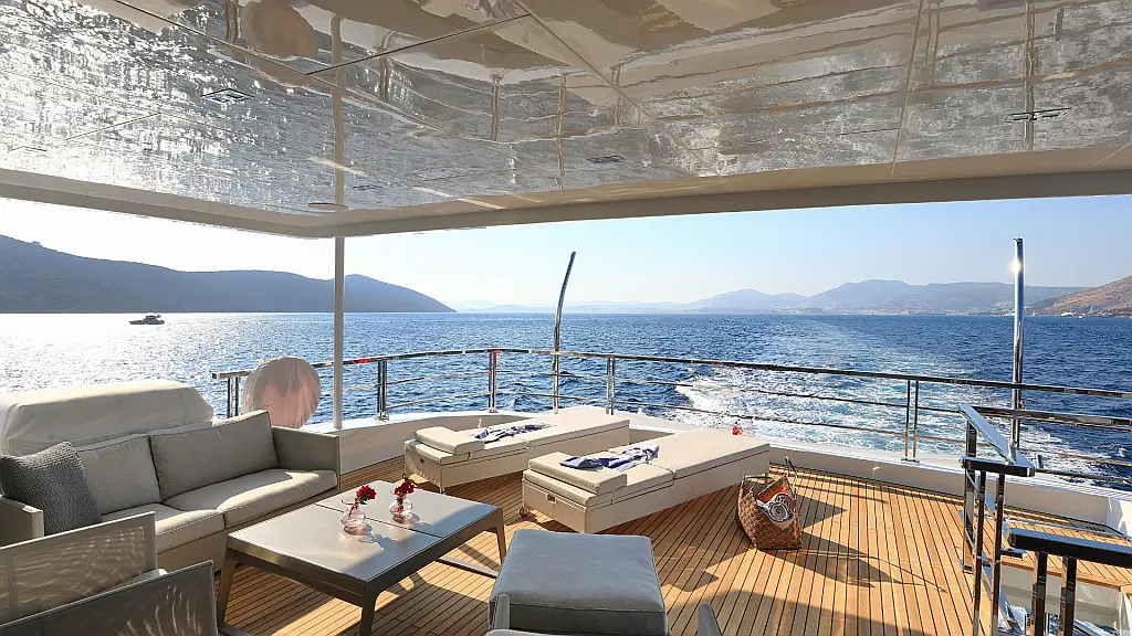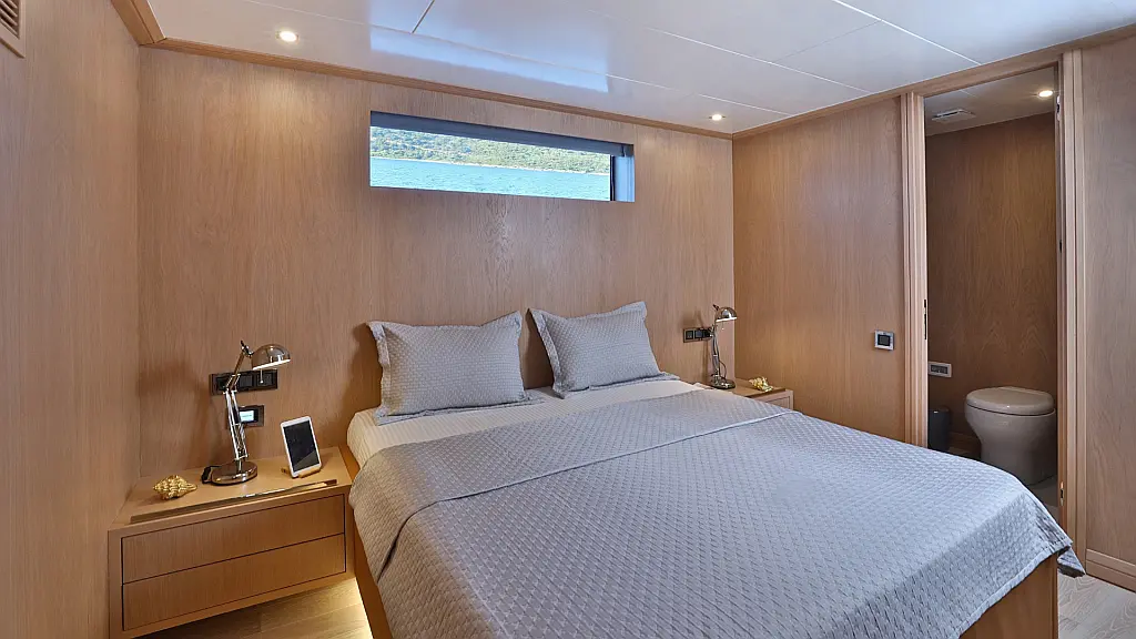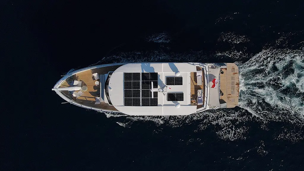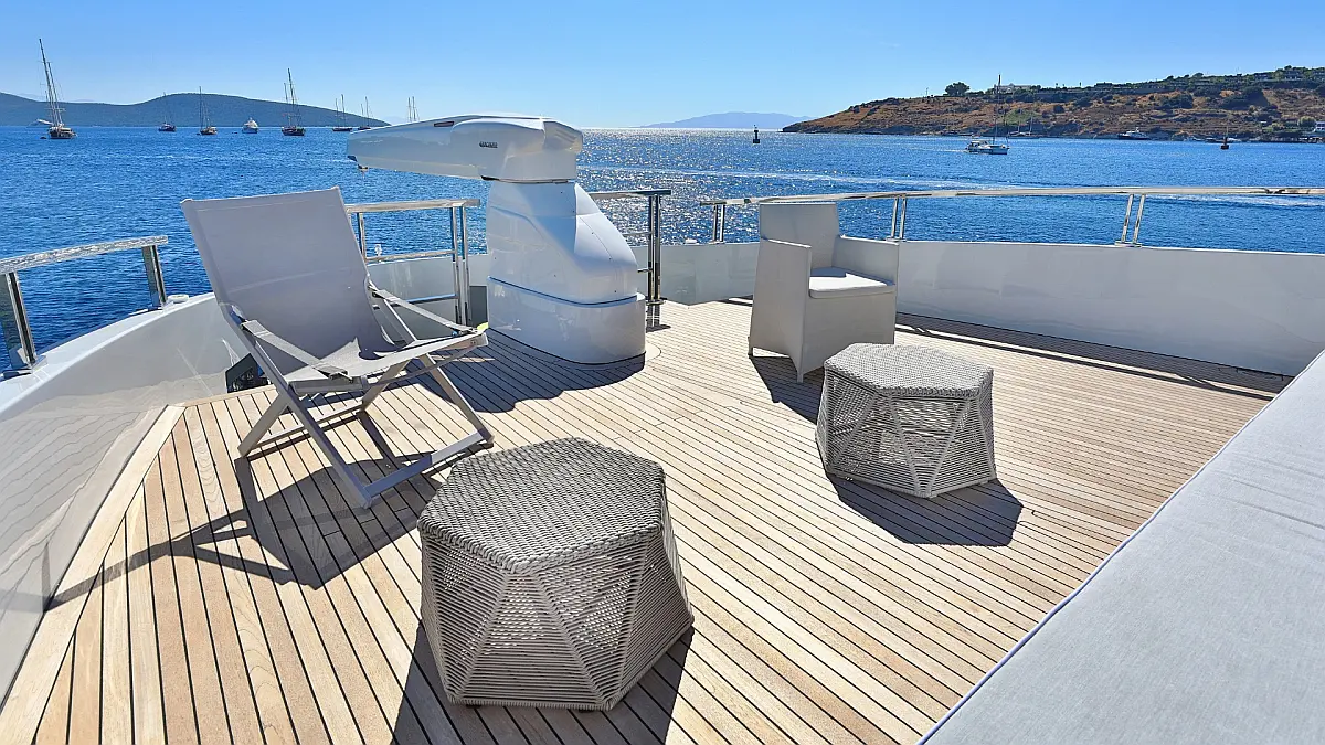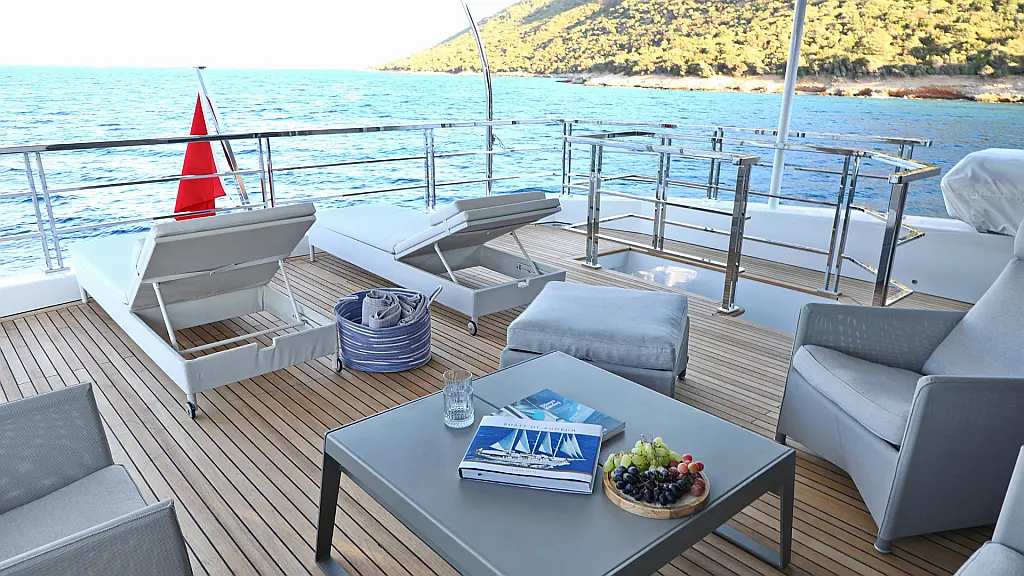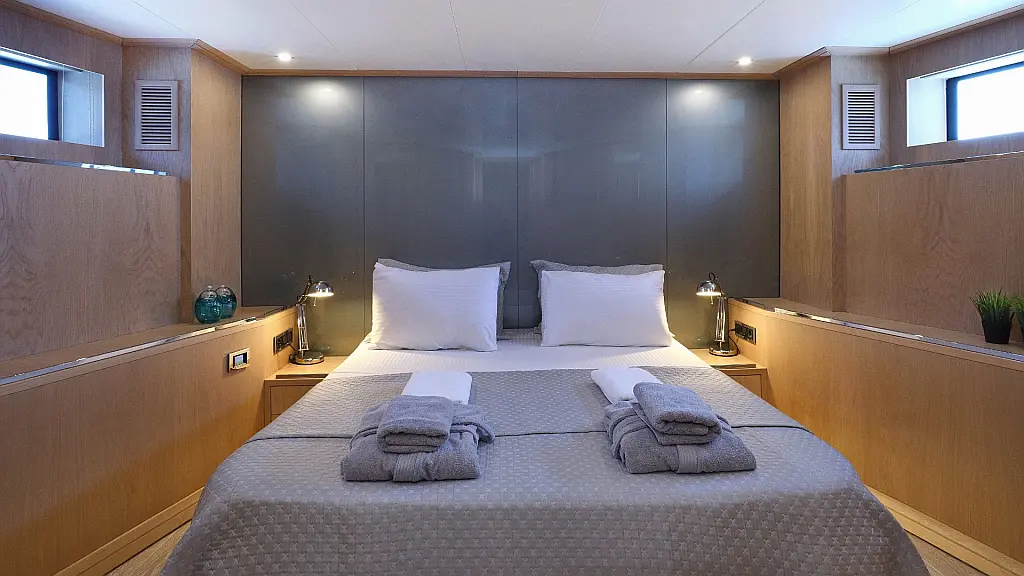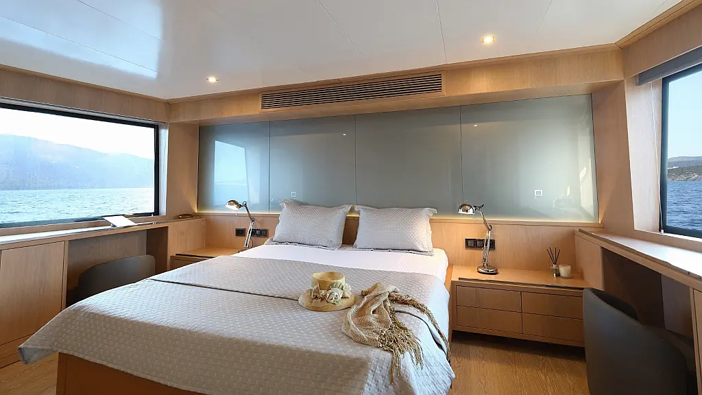 Air conditioning, Solar panels, SUP, At-anchor stabilizers, Underway stabilizers, Exercise equipment, Snorkel gear, Sunbathing area, Swimming platform, Internet