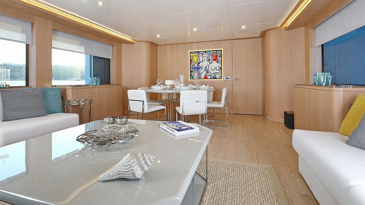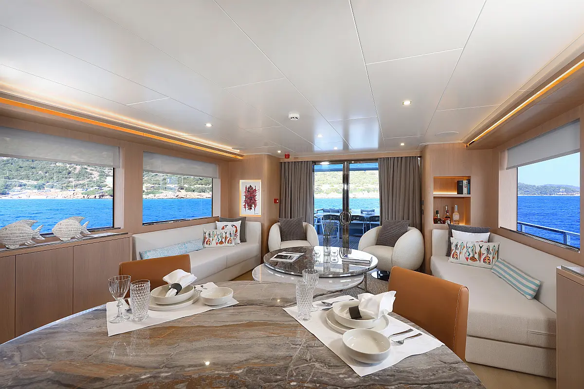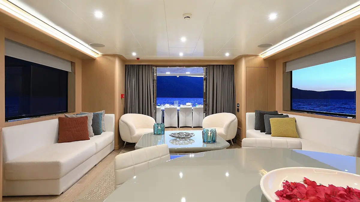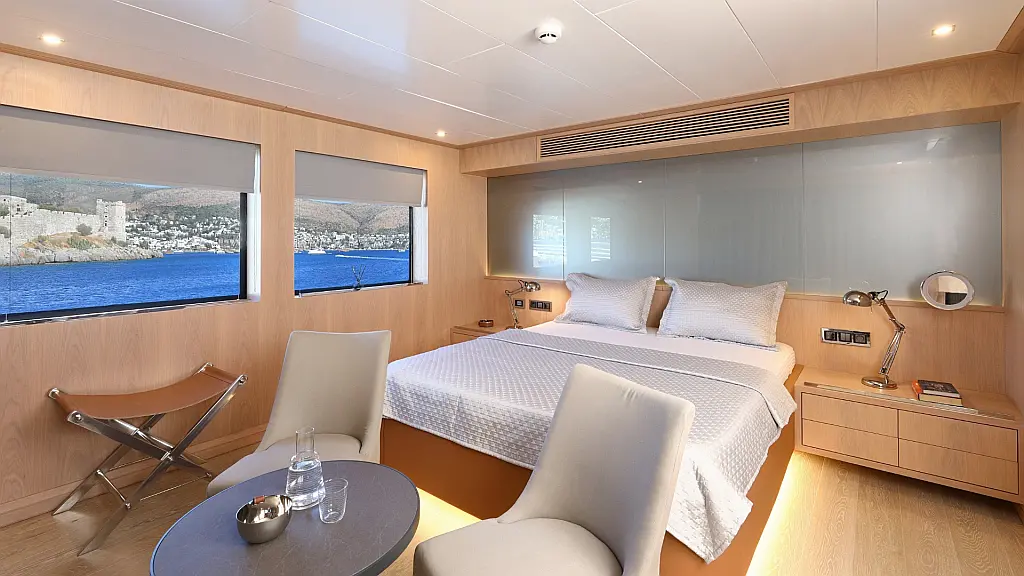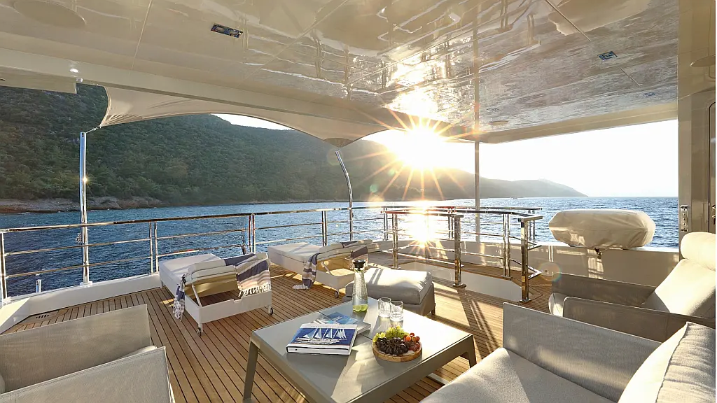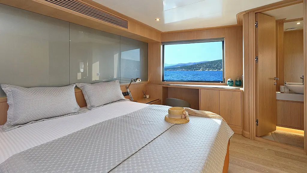 Air conditioning, Solar panels, SUP, At-anchor stabilizers, Underway stabilizers, Exercise equipment, Snorkel gear, Sunbathing area, Swimming platform, Internet