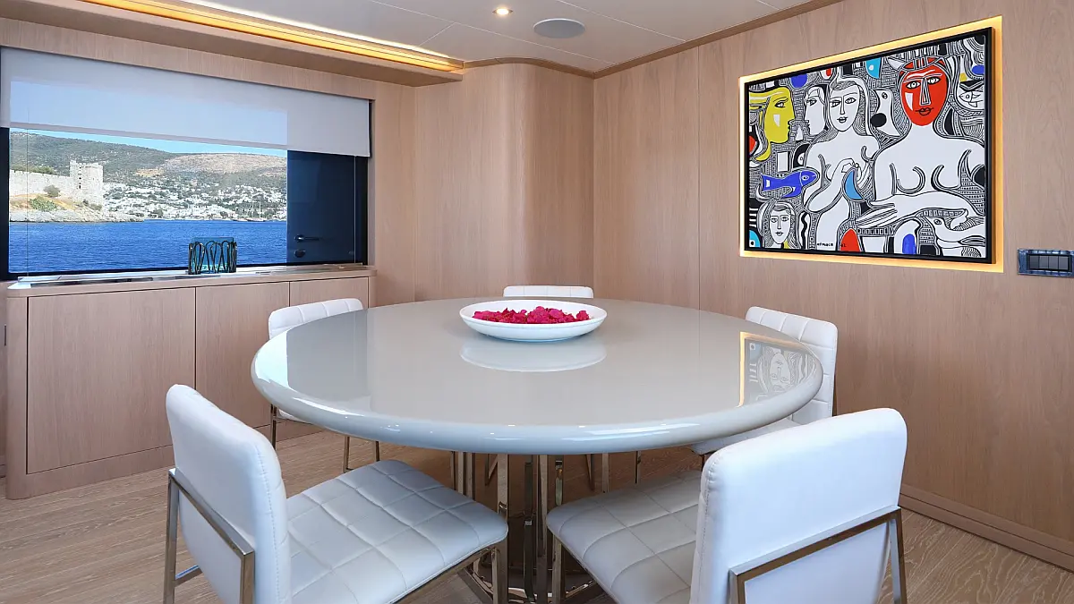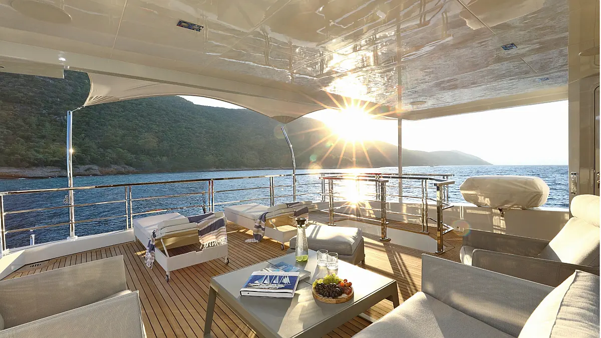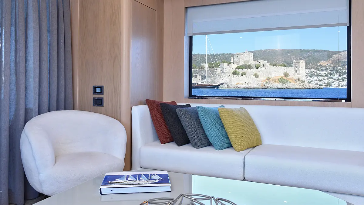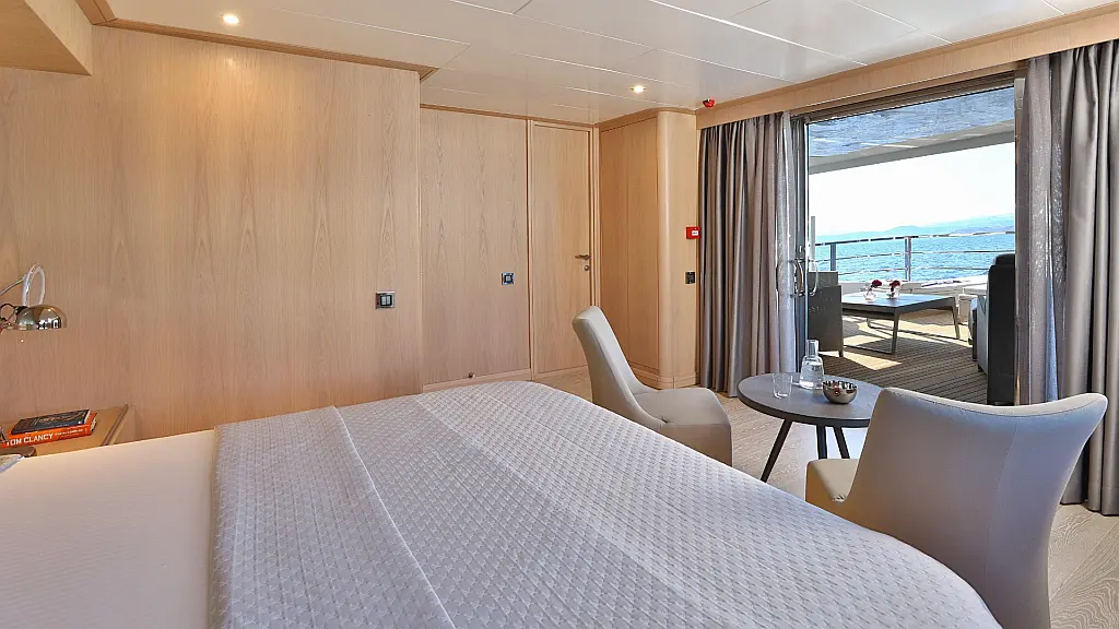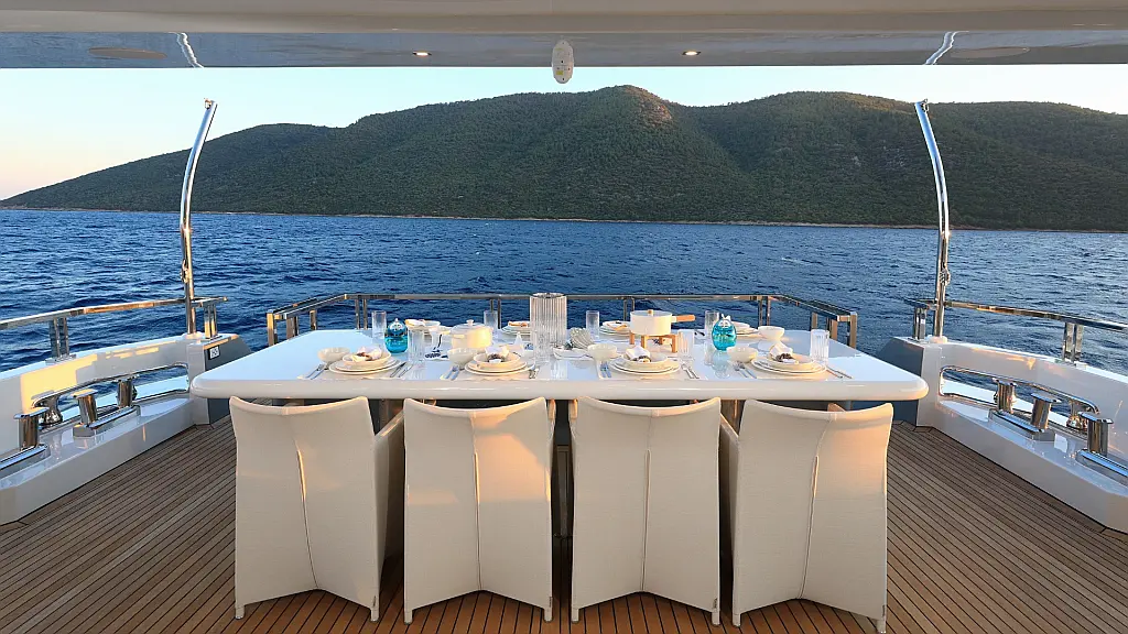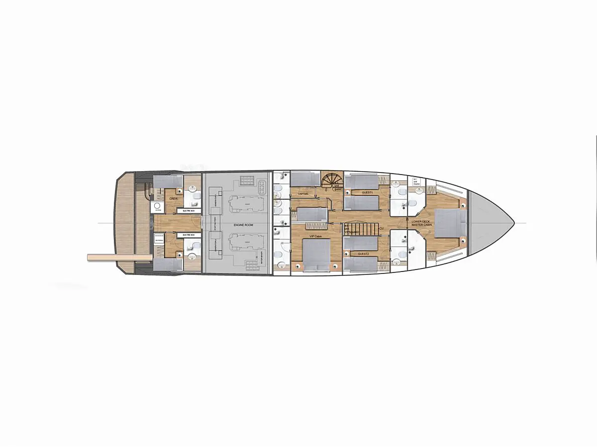 Air conditioning, Solar panels, SUP, At-anchor stabilizers, Underway stabilizers, Exercise equipment, Snorkel gear, Sunbathing area, Swimming platform, Internet