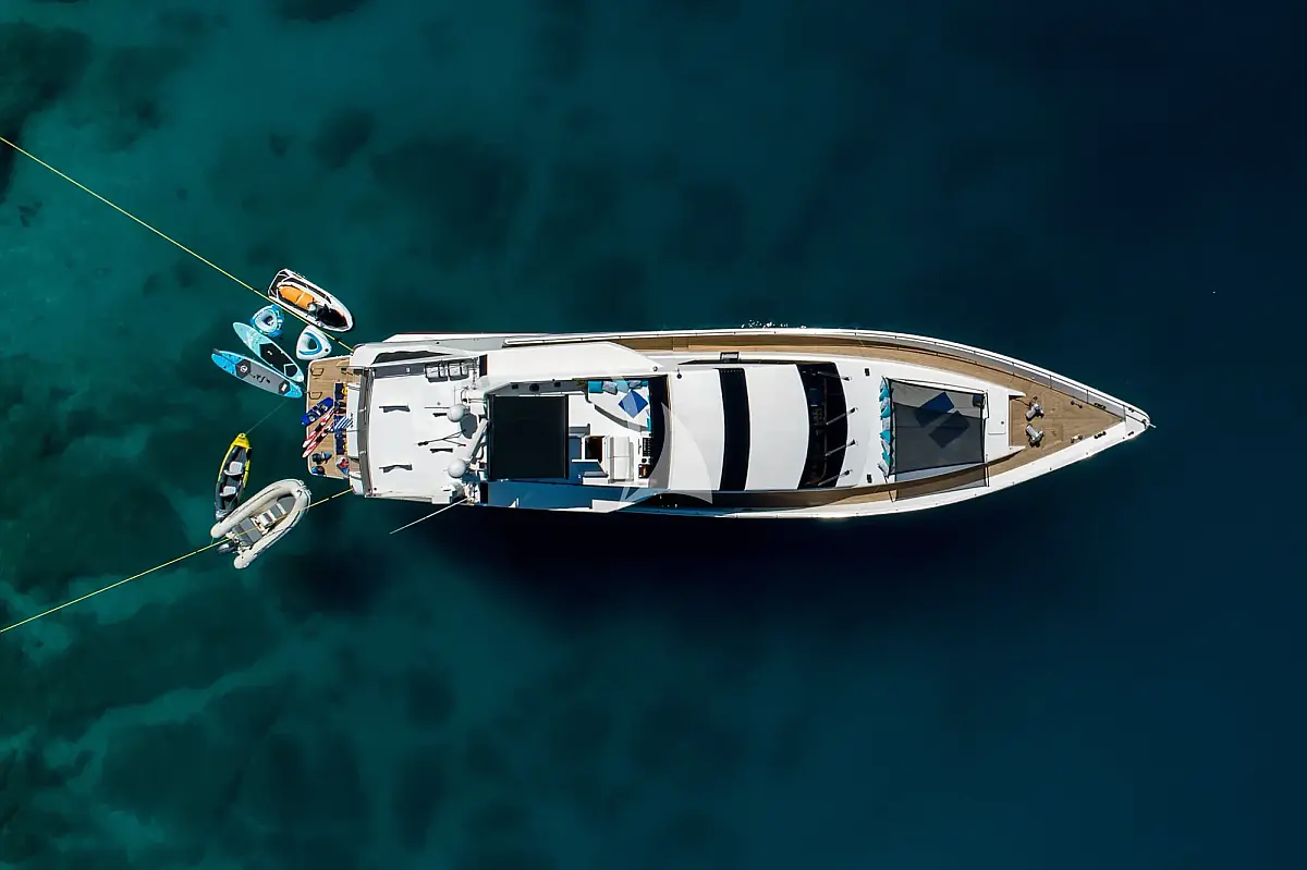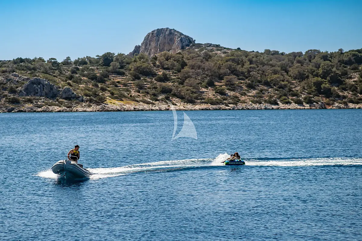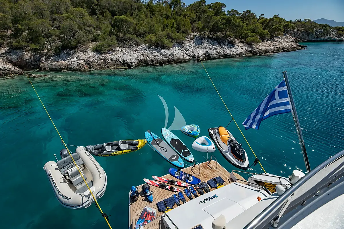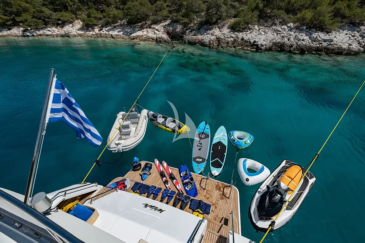 Snorkeling equipment (1), Wakeboard (1), Fishing equipment, SUP (2), Jet Ski Sea-Doo Speark, Sea scooters (2), Kayak (1), Tender 4.20m with Yamaha 40hp engine, Towable tubes