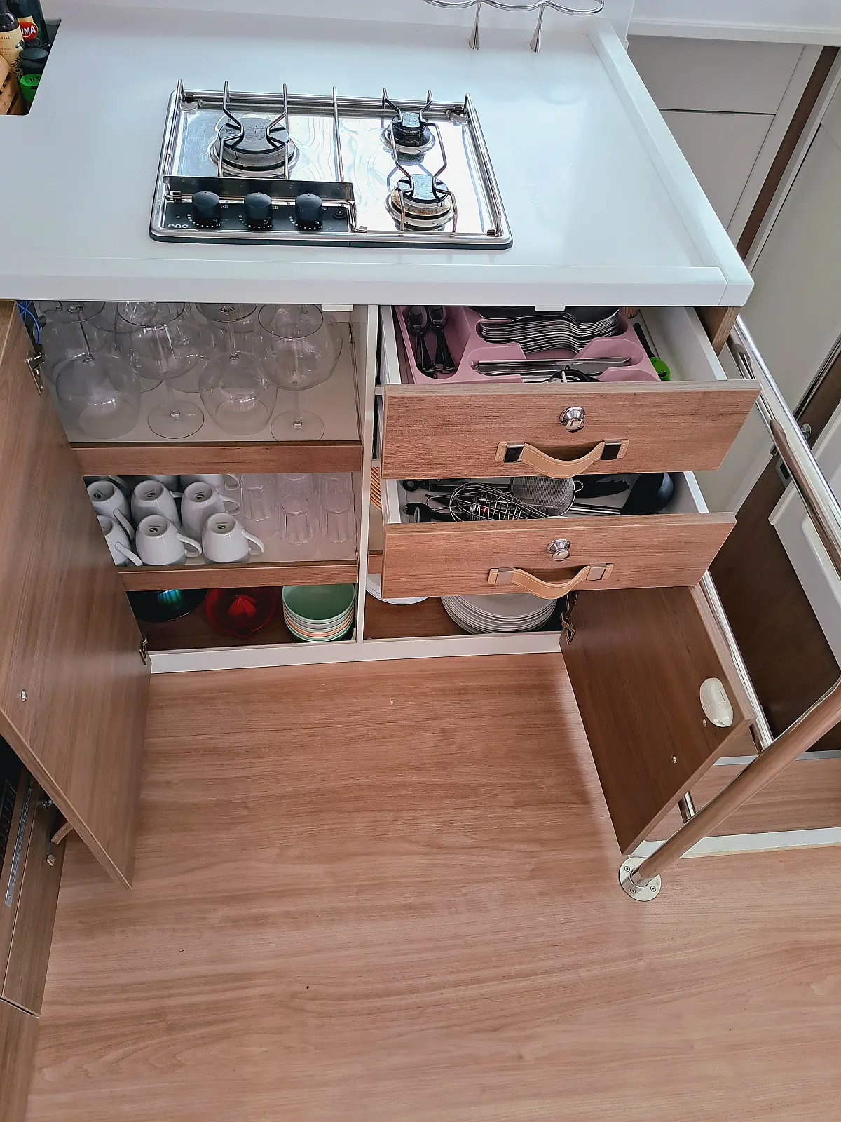 Generator, Water maker, Electric winches, Inverter, Air condition, Cockpit speakers, Cockpit cushions, Electric toilet, Dinghy, Refrigerator