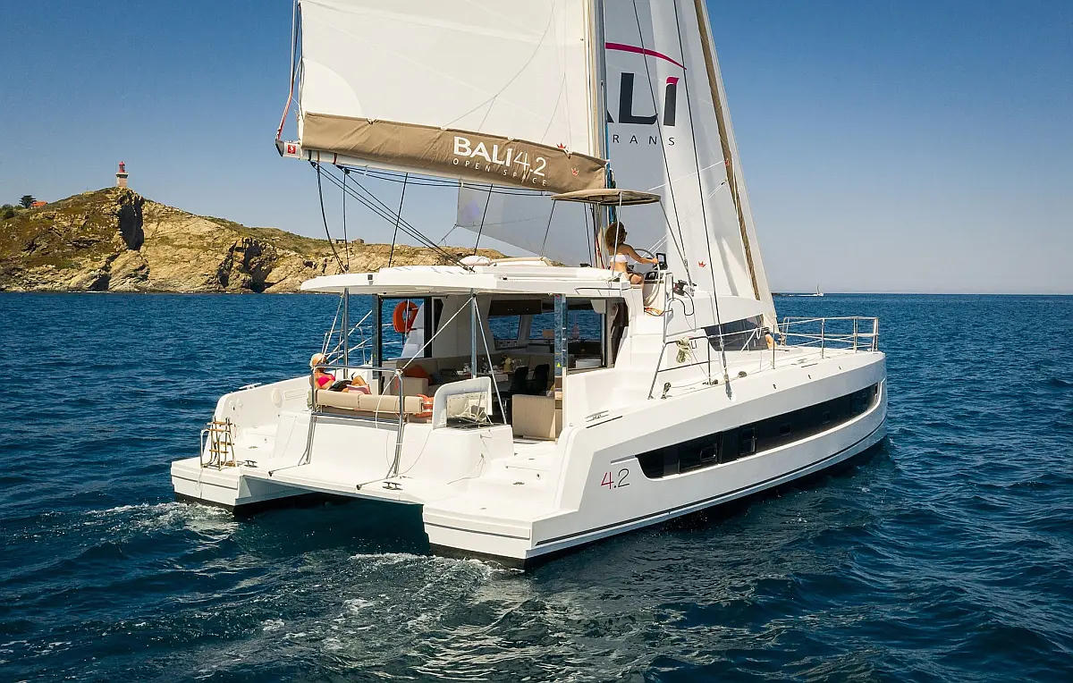 Bimini, Sprayhood, Radio-CD player, Gangway, Cockpit speakers, Dinghy, Electric windlass, Icebox, Inverter, Cockpit table, Holding Tank, Ensuite WC/Shower, Solar Panels, Cockpit Cushions, Cockpit Shower, Swimming ladder, Electric winch, Lateral sliding windows, Bathing platform, Flybridge, Retractable main door to open space salon at bow, Tiller, Ambient lighting, Shore Power 220 V