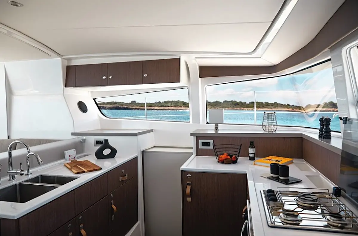 Illy coffee machine, Home Refrigerator, Freezer, Galley Fully Equipped, Gas Stove Oven, Fusion player ra70n with bluetooth in salon and cockpit, Aft Cockpit/saloon fully open space, Floating gadgets, AUDIO USB INPUT, Hot Water, Fans (Cabin & saloon), Storage and bookcase in Chart table, 12 V Socket, 220 V Socket, Battery Charger, Inverter, Converter