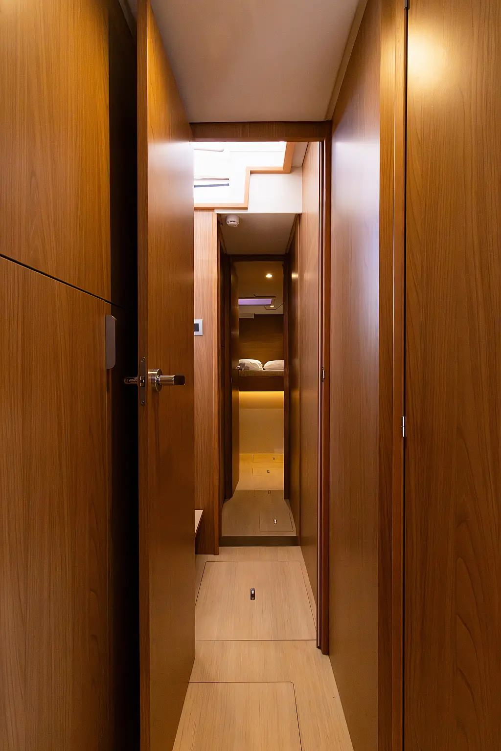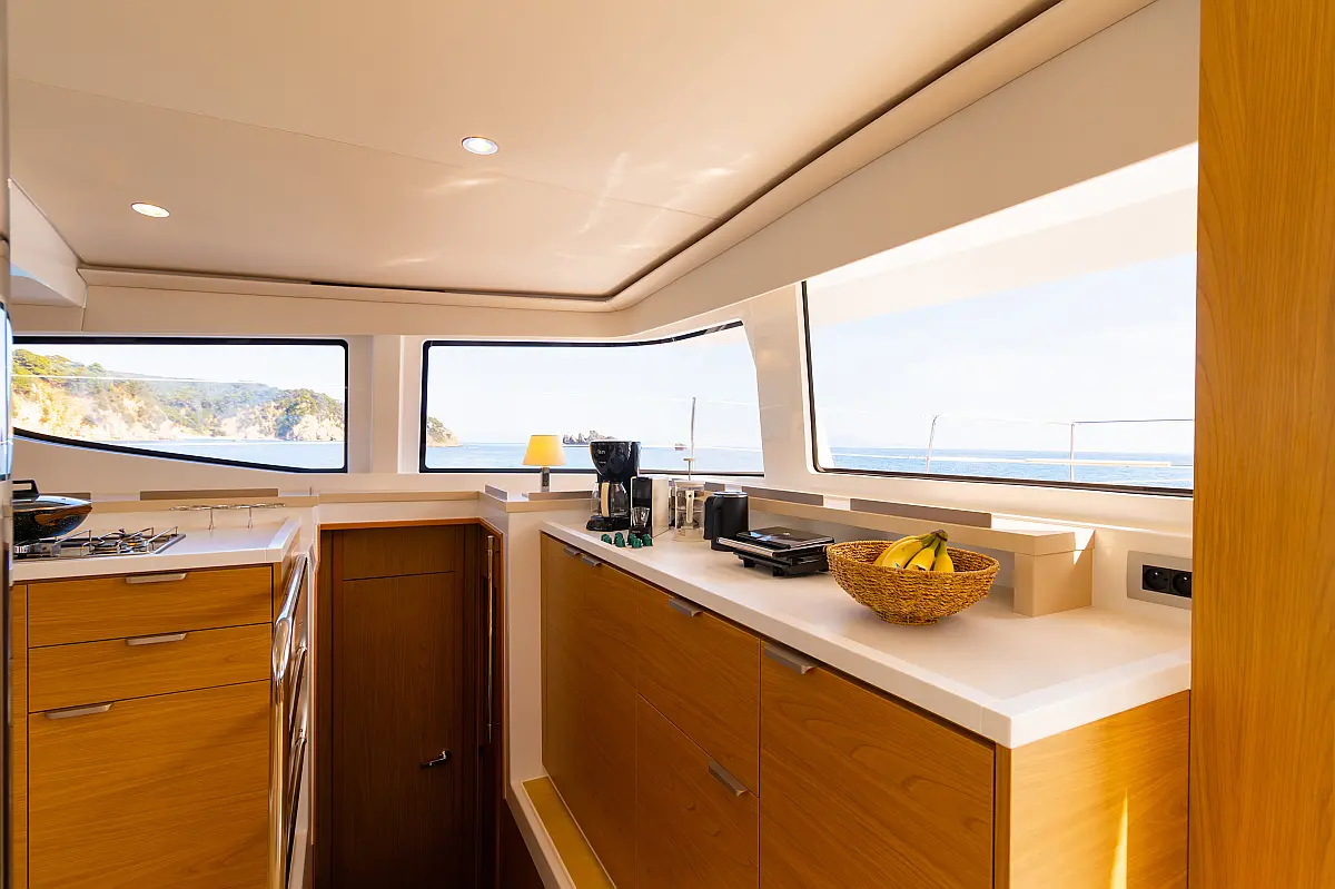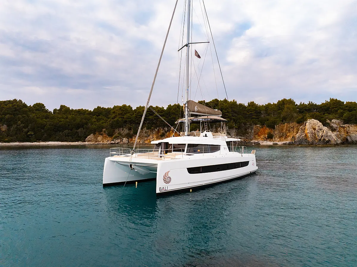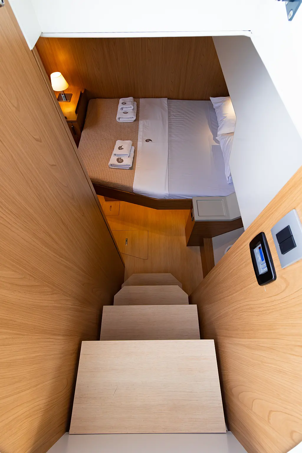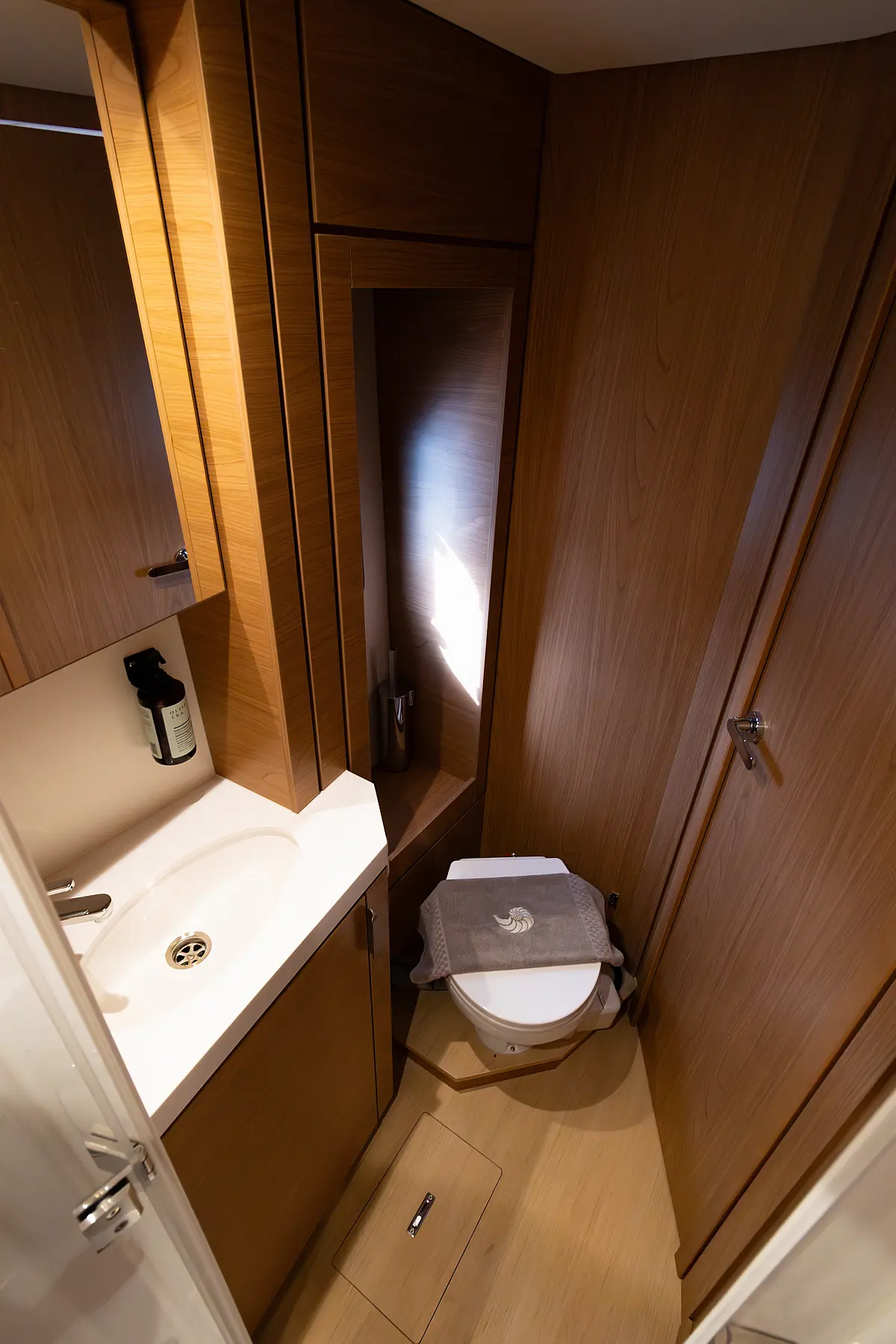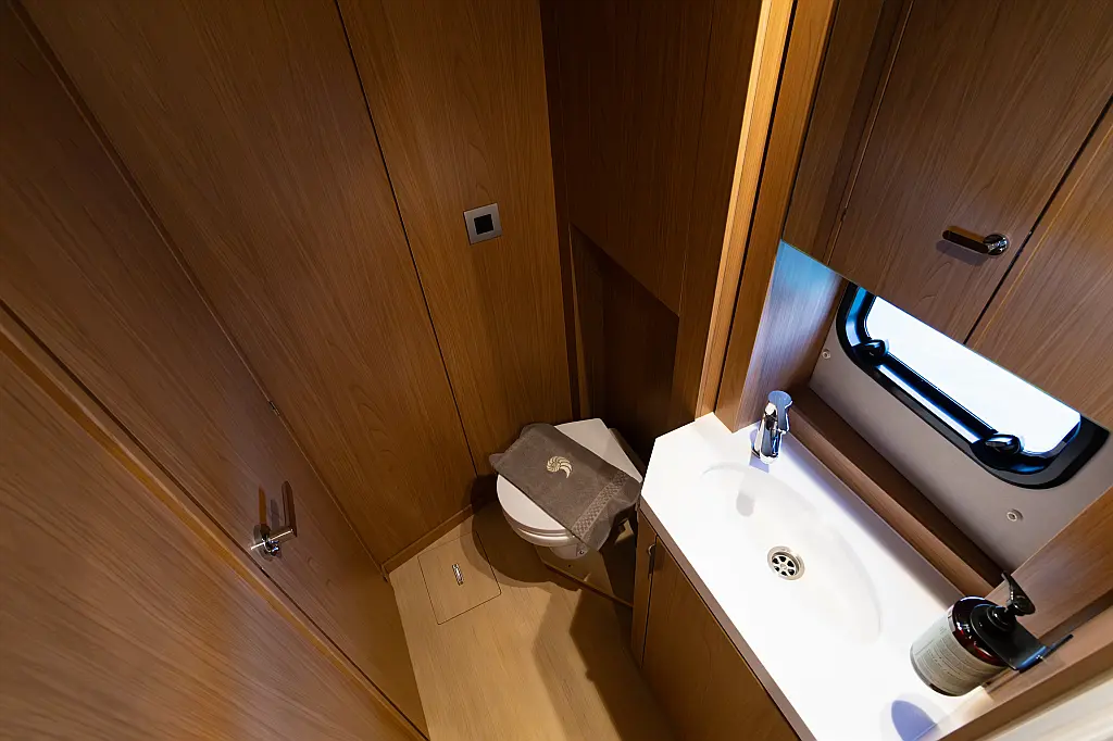 Furling Genoa, Lazy bag, Lazy Jacks (true), Autopilot, Dinghy with Outboard motor, Full Set of Charts, Fly Bridge Bimini, Cushions on the flybridge and sunbathing deck, Cockpit Cushions, Cockpit Shower, Electric Anchor Windlass, Electric Winch, Wind Instruments, Depth Sounder, Hot Water, Cabin Fans, Electric Toilet Pump, Generator, Independent A/C in all cabins, Watermaker, Battened mainsail, Solar panels, Inverter, VHF