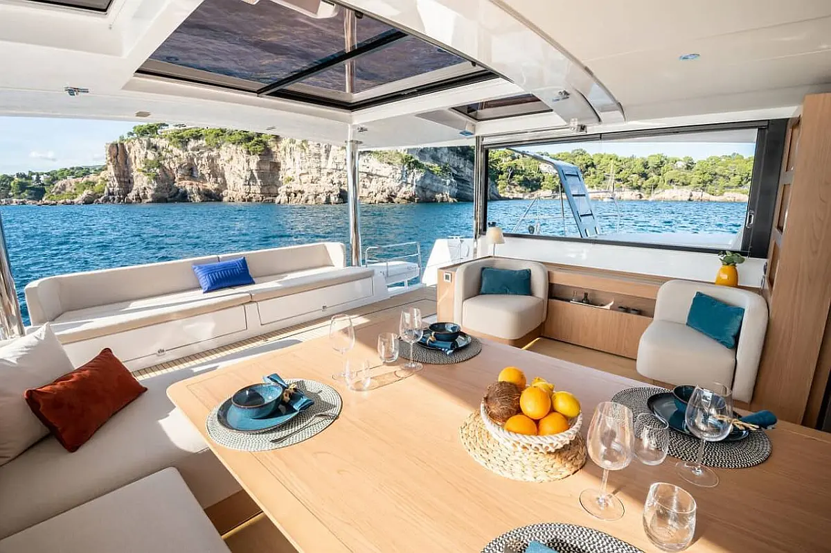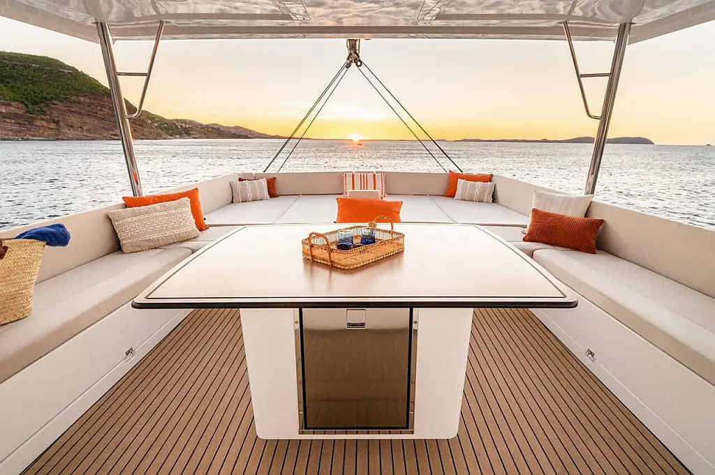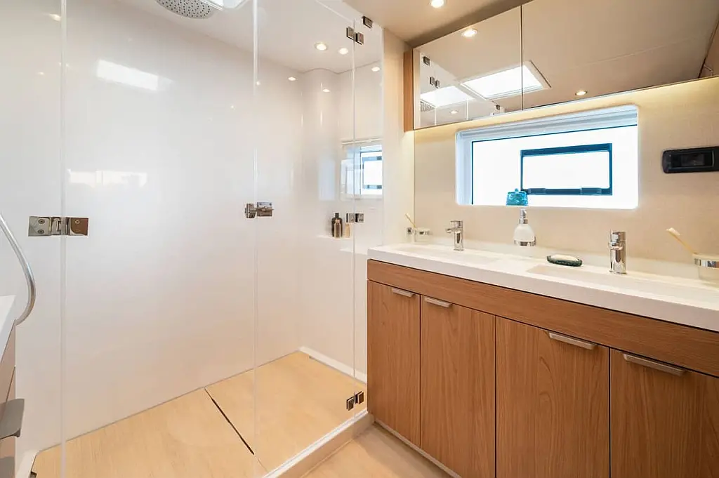 Mosquito net, Fusion radio, Watermaker, Solar panels, Washer & dryer, Gaz oven, TV in salon, Air condition