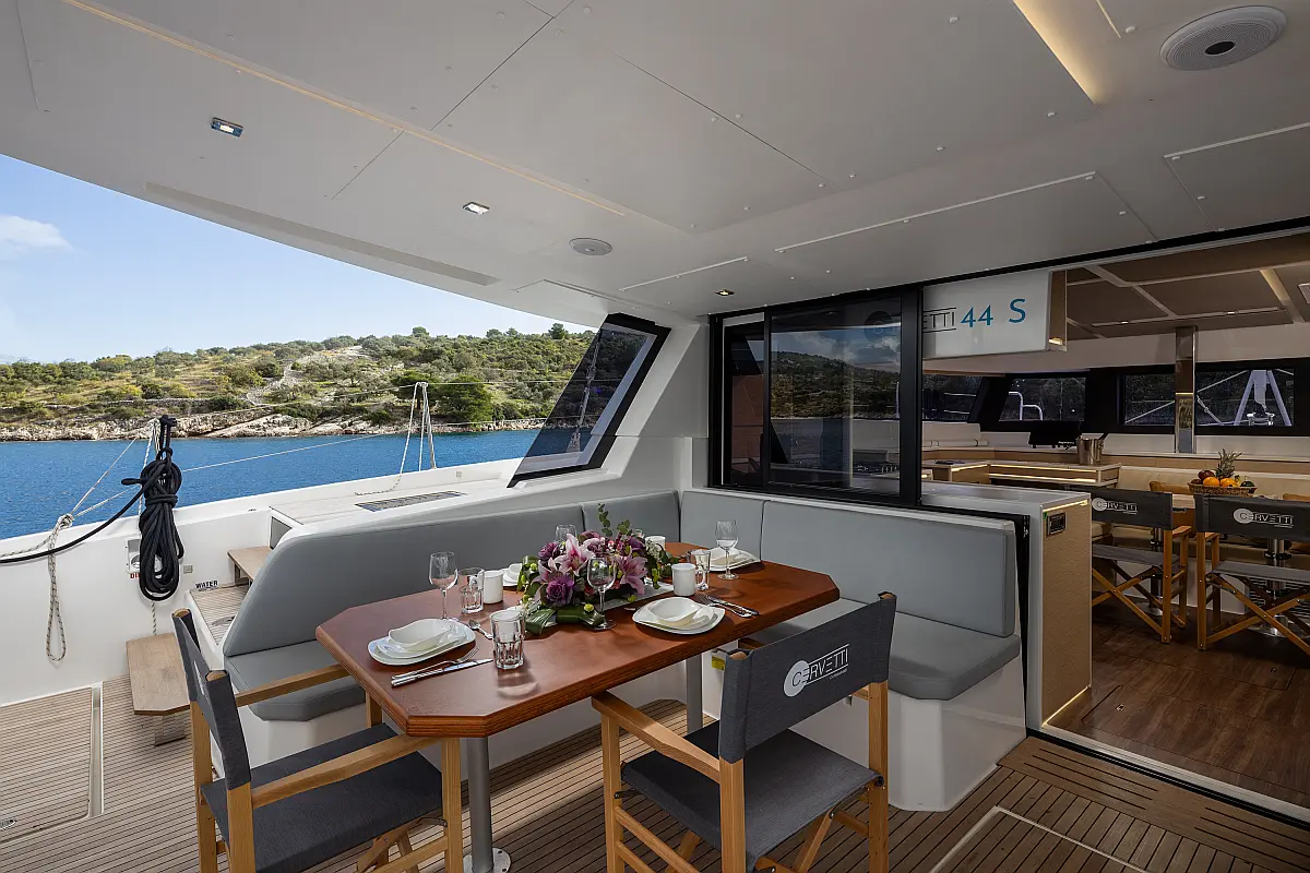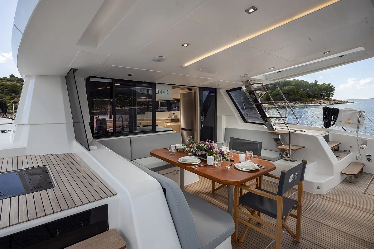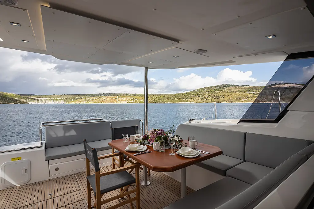 Hydraulic gangway, Teak cockpit deck, Sundeck cushions