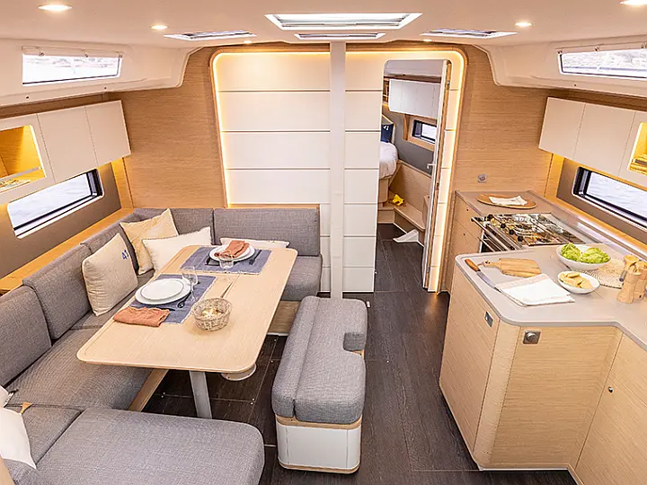 Safety equipment, Water purifier, Manual winches, Lazy jack, Lazy bag, Sprayhood, 220V outlets in cabins and saloon, BBQ grill, Bimini top, Water tanks plus black water tanks, External speakers, Hot water, Convertable table in the saloon, External shower, Inverter, Internal speakers, 220V electrical system, Autopilot, Stove, Kitchen utensils, Oven, Cushions and blankets, Refrigerator, Audio system, GPS chart plotter - cockpit, Wind/speed/depth instruments, Shore connection 220 V, Dinghy, Gas bottles, Electric anchor windlass, Bow thruster, Speakers