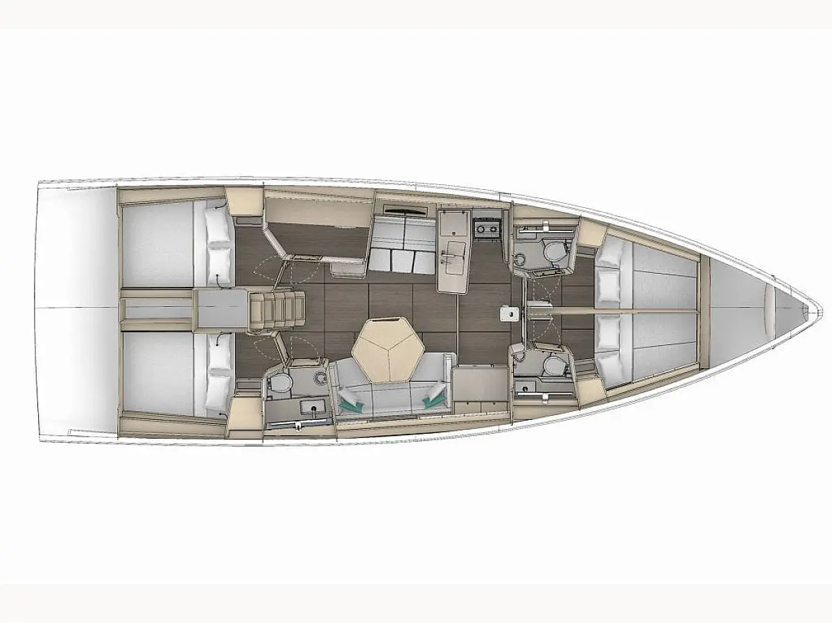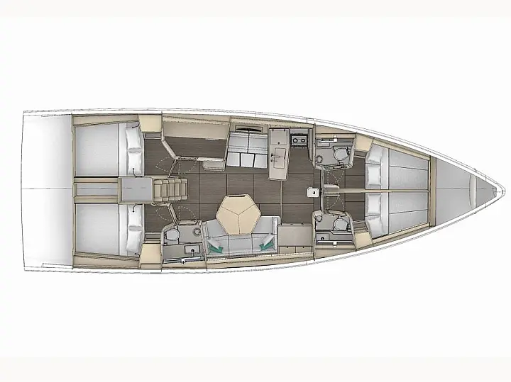 Safety equipment, Water purifier, Manual winches, Sprayhood, 220V outlets in cabins and saloon, BBQ grill, Bimini top, Water tanks plus black water tanks, Internal electric fridge, External speakers, Hot water, Convertable table in the saloon, External shower, Inverter, Internal speakers, 220V electrical system, Air conditioning, Autopilot, Stove, Kitchen utensils, Oven, Cushions and blankets, Refrigerator, Audio system, Generator, Heating, GPS chart plotter - cockpit, Wind/speed/depth instruments, Shore connection 220 V, Dinghy, Gas bottles, Electric anchor windlass, Bow thruster