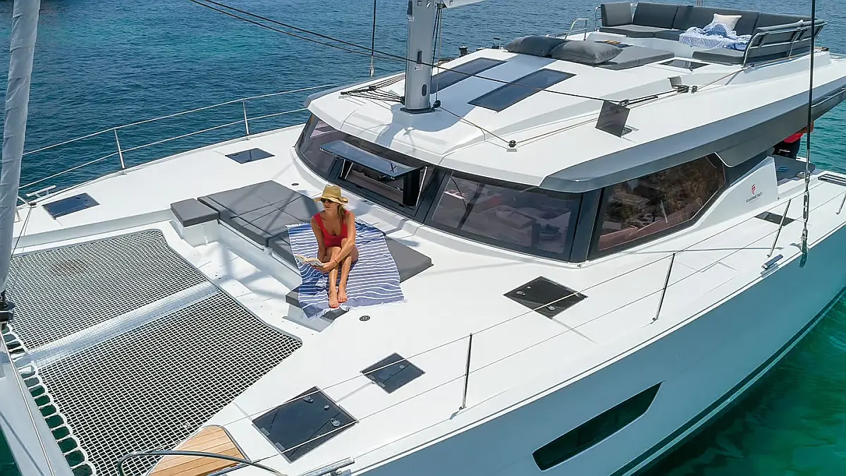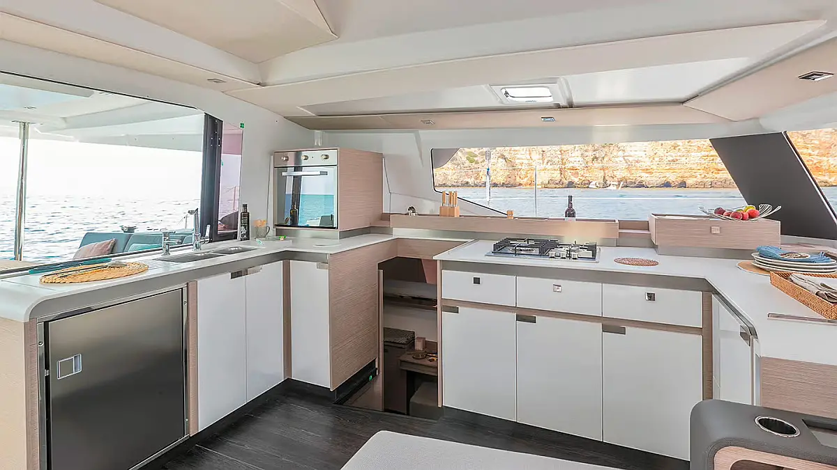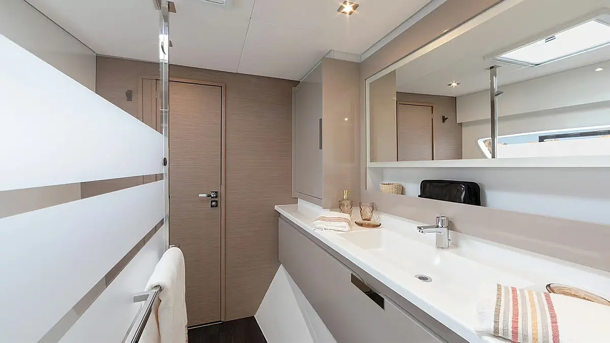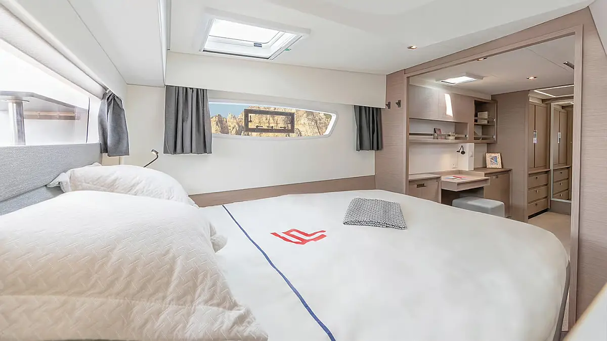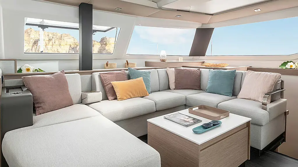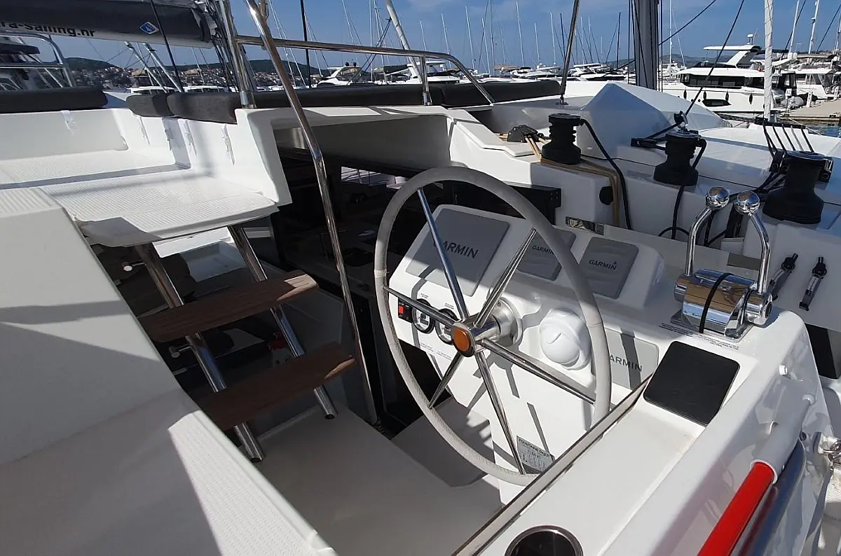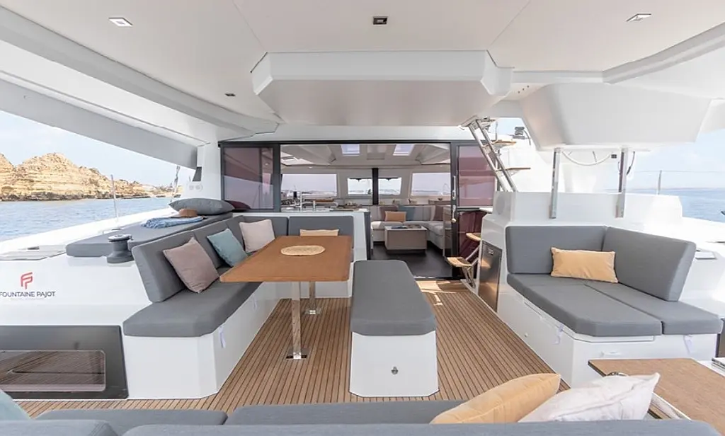 Safety equipment, Water purifier, Electric toilet, Manual winches, Lazy jack, Lazy bag, 220V outlets in cabins and saloon, BBQ grill, Water tanks plus black water tanks, Internal electric fridge, External speakers, Hot water, Convertable table in the saloon, External shower, Inverter, Internal speakers, 220V electrical system, Air conditioning, Autopilot, External GPS plotter, Tender, Stove, Kitchen utensils, Oven, Cushions and blankets, Refrigerator, Bathing platform, Audio system, Generator, Heating, Flybridge, Sunbeds, GPS chart plotter - cockpit, Wind/speed/depth instruments, Shore connection 220 V, Dinghy, Gas bottles, Electric anchor windlass, GPS chart plotter, Solar panels, Watermaker - desalinator, Galley in cockpit, Fusion radio, Autopilot, Additional fridge