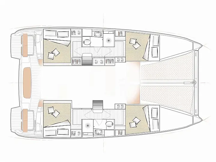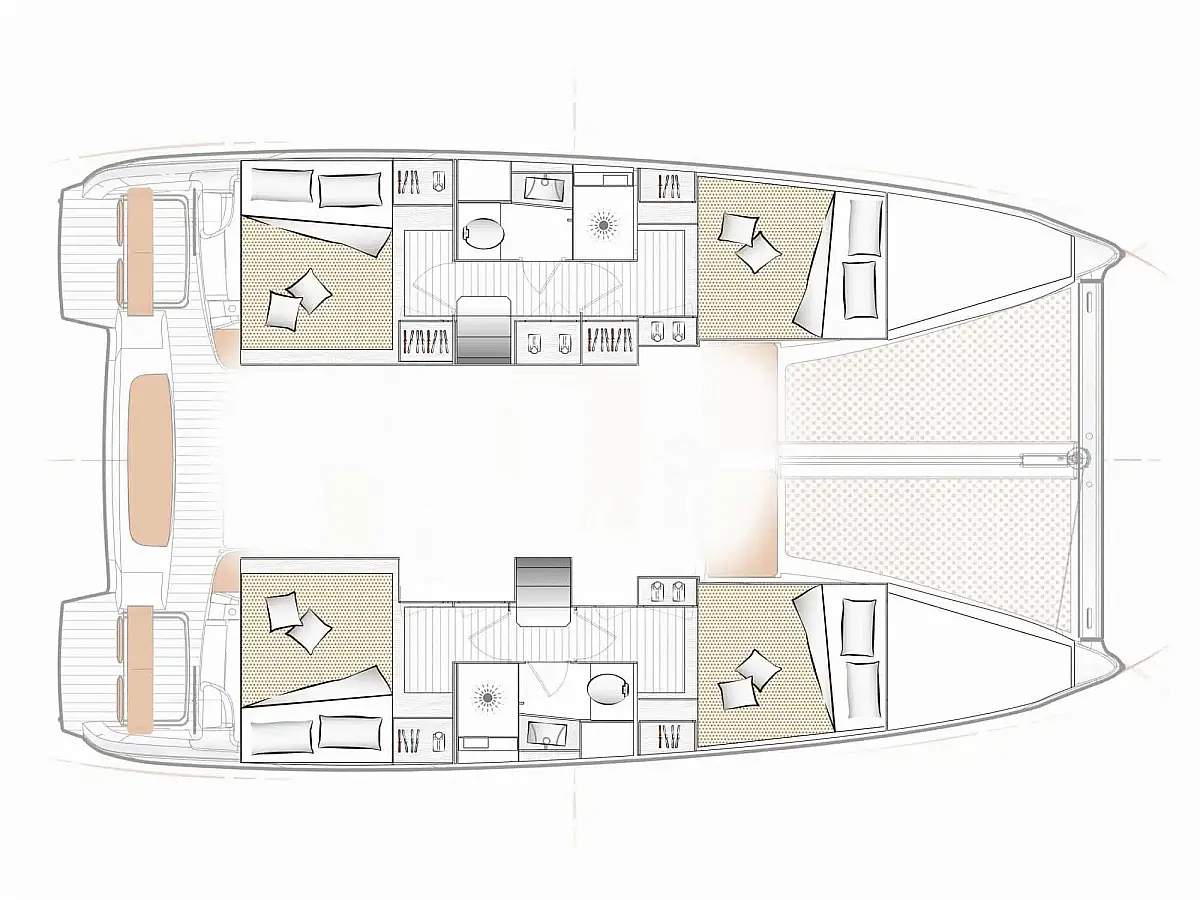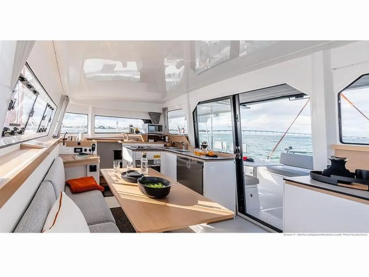 Lazy Bag, Extended Pulse Line rig, Code 0, Electric Halyard Winch, Full batten Main Sail, Furling Genoa, Lazy Jack, Wheel Steering