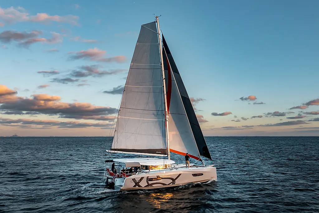Code 0 Gear with furler and extended composit bowspirit, All electric winches, Black lacquered aluminum mast, Upgrade 12" displays, Pair of 3-blade folding propellers