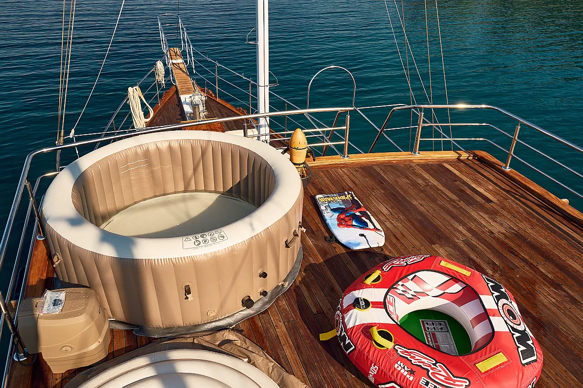 Deck shower, Deck jacuzzi, Sunbathing cushions, Sundeck beds