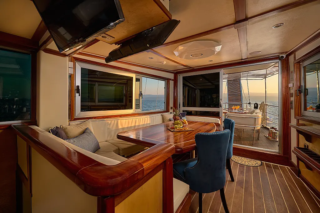 Bimini, Salon TV/DVD, Salon Stereo/Music, Sat TV, iPod/MP3 Hookups, Books / DVDs / Games, Sun Awning, Hammock, Wind Scoops, BBQ, Hair Dryers, Generator, Inverter