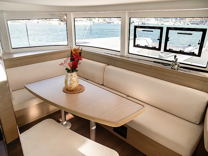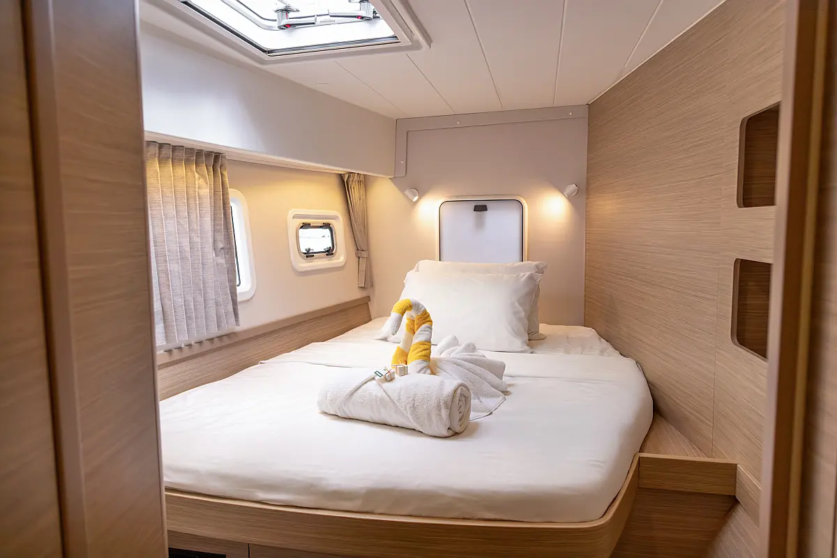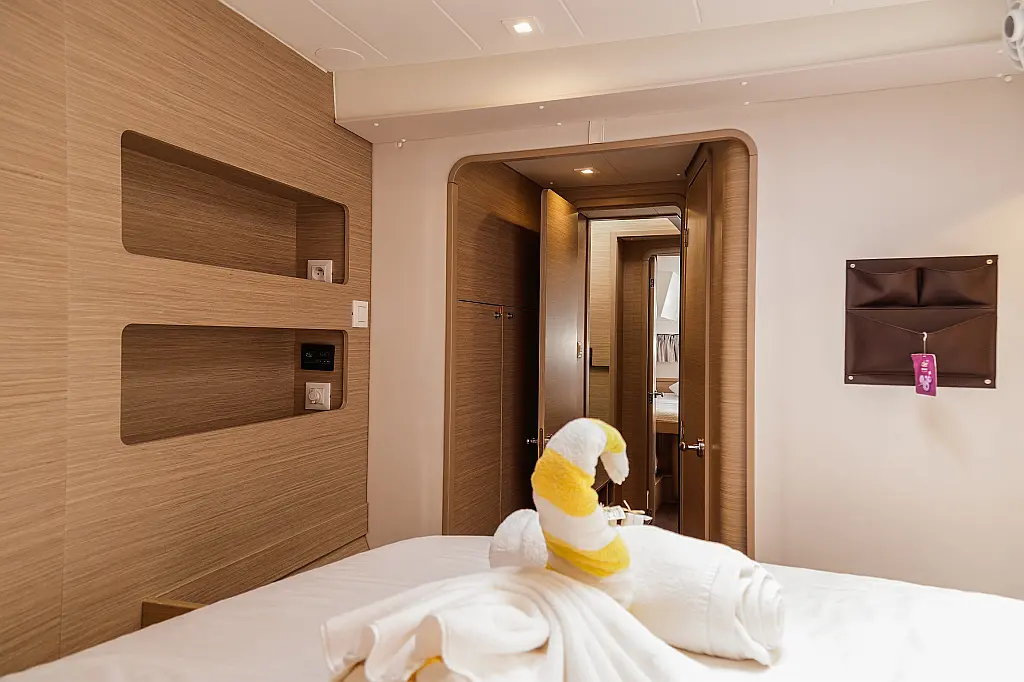 Toilet brush, Saloon table, Blankets, Clothes hangers, LED interior lights, Electric toilet, Electric fans in cabins, Pillows, Upholtery
