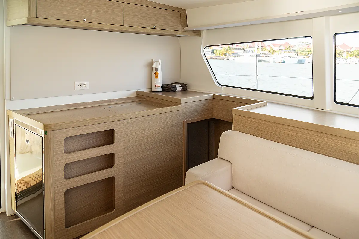 Blender, Gas cookers, Kitchen utensils, Oven, Gas bottles, Side galley, Refrigerator, Water pump, Freezer