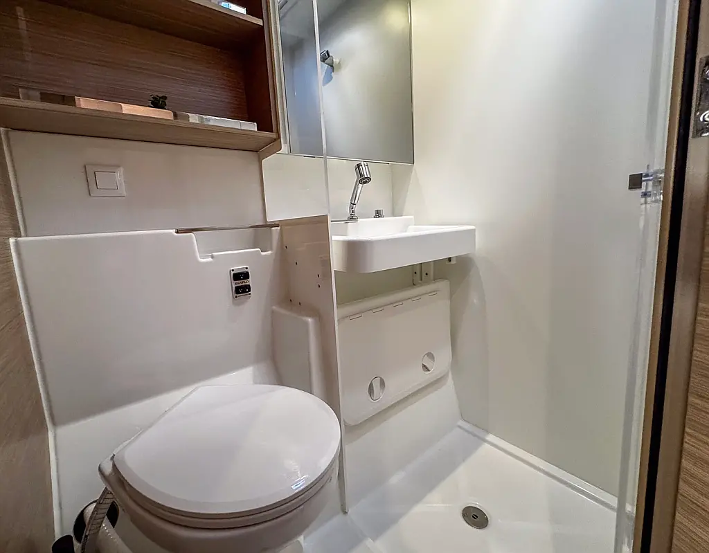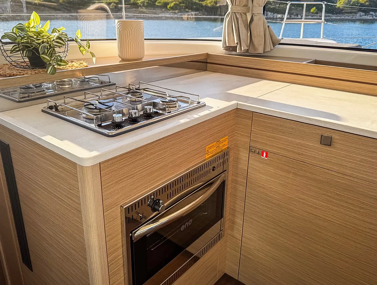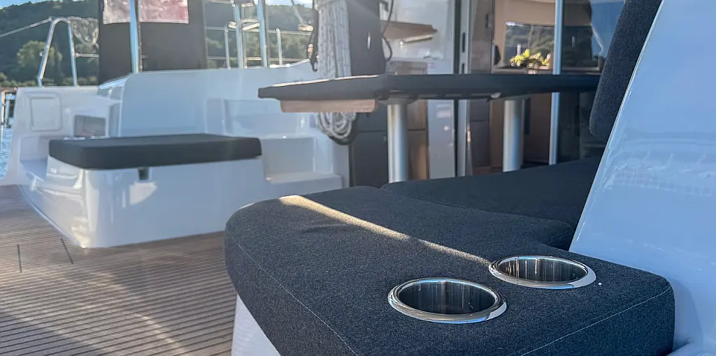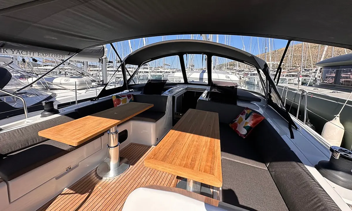 Cockpit/stern, outside shower, Electric anchor windlass, Bimini top, Dinghy, Cockipt refrigerator, Dinghy outboard engine, Teak cockpit