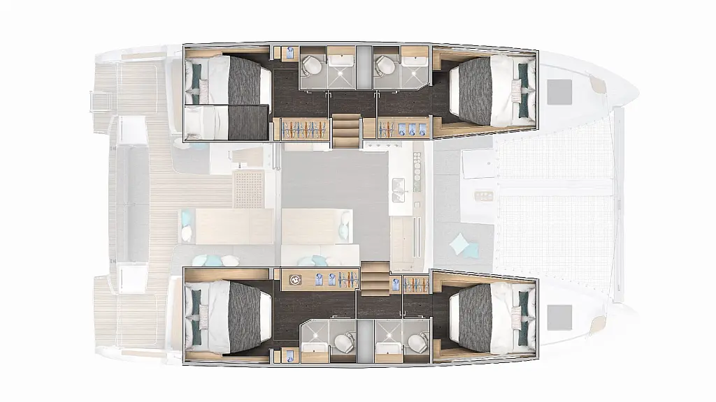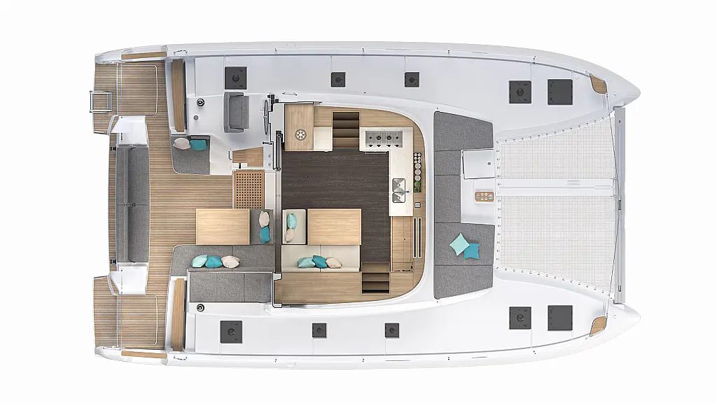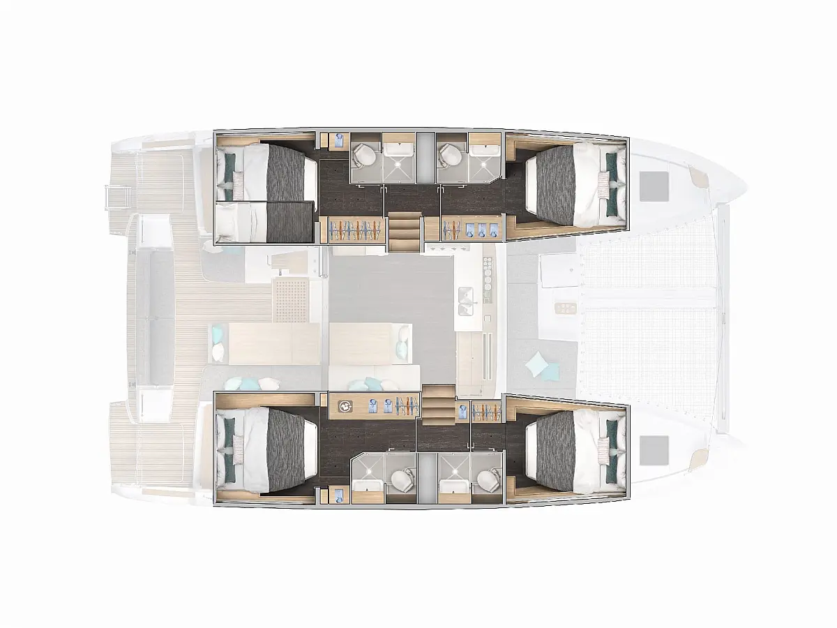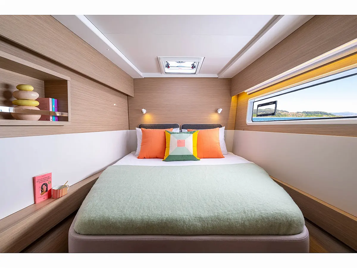 Air conditioning cold / heat in saloon and all cabins, Electric generator 220v, Fresh water maker, 2 separate Hi-fi sound Systems, Snorkeling equipment, 1 Stand Up Paddle, Sunbeds on flybridge and bow area, Double Fridge and Freezer, Large sunroof flybridge, Unlimited Starlink internet connection, Nespresso coffee machine with 56 complimentary caps, Inverter 220v, 4 solar panels, 4 underwater blue lights, 4 electric toilets, Dinghy 20HP engine