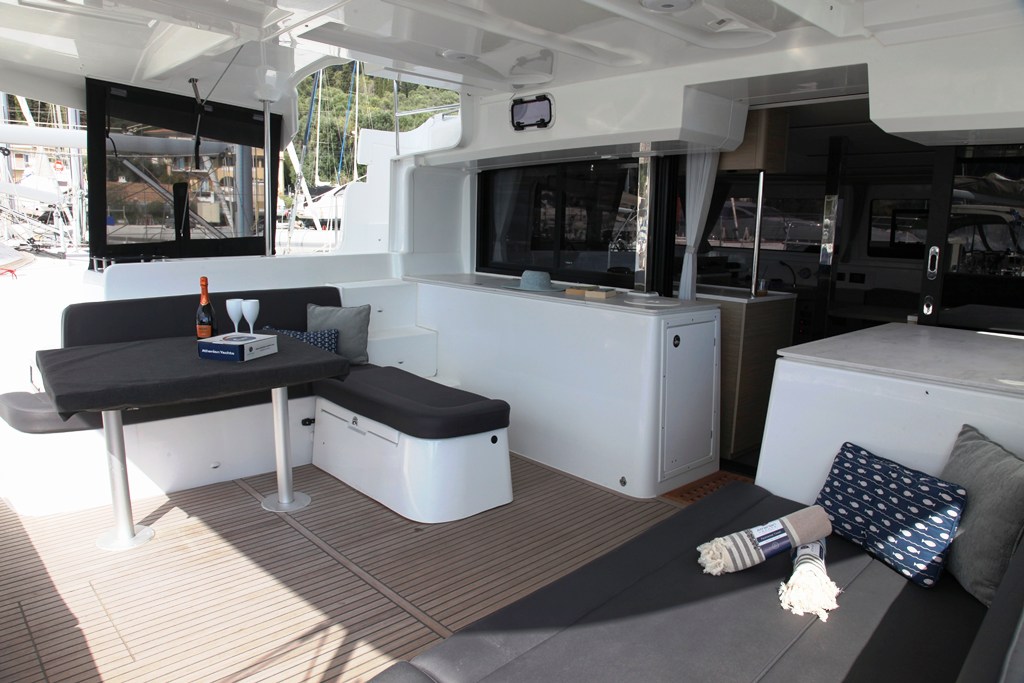 Electric anchor windlass, Cockpit table, Outboard, Bimini Top, 220V Shore power, Lazy jacks, Cockpit cushions, Snorkelling equipment (4), Wooden cockpit, Electric winch (1)