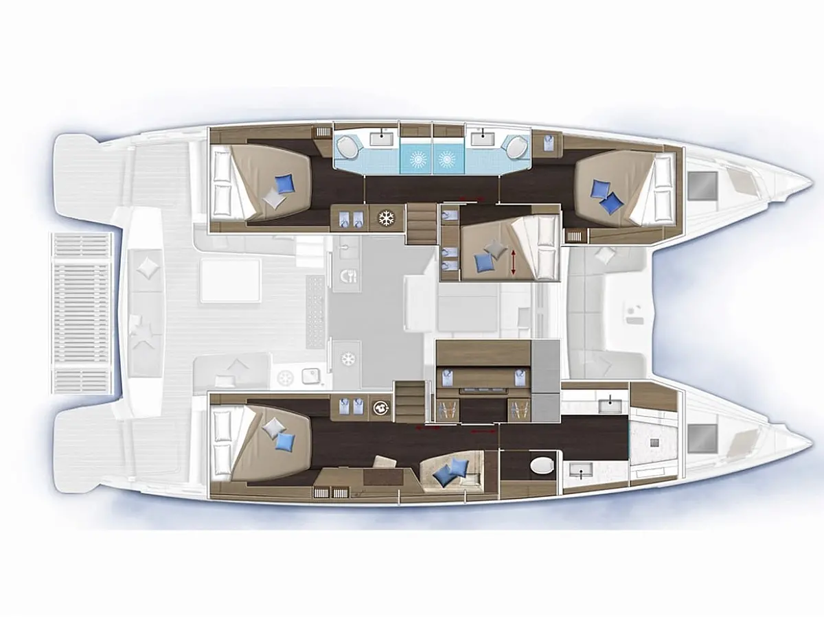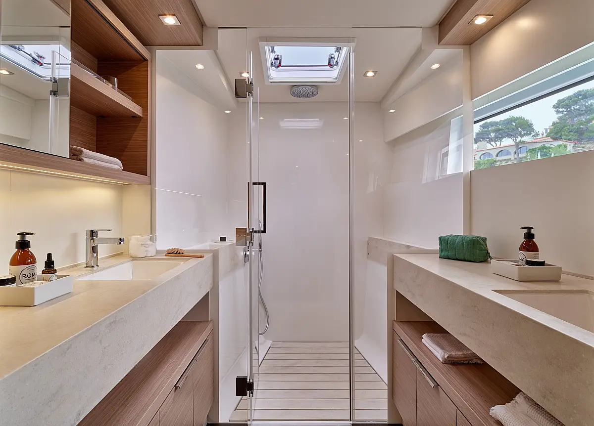 A/C, Generator, Dishwasher, Bimini hardtop (true), Espresso machine, Electric toilet, Hydraulic passarella, Snorkelling equipment, Hydraulic Platform (true), Inverter, Watermaker, Teak Floor, Icemaker