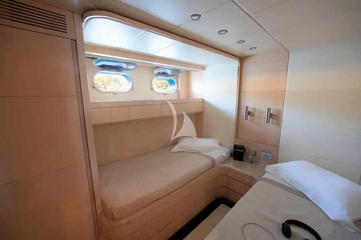 2x2400 hp Consumption: 800 Litres/Hr at 20 knots / 900 Litres/Hr at 23 knots