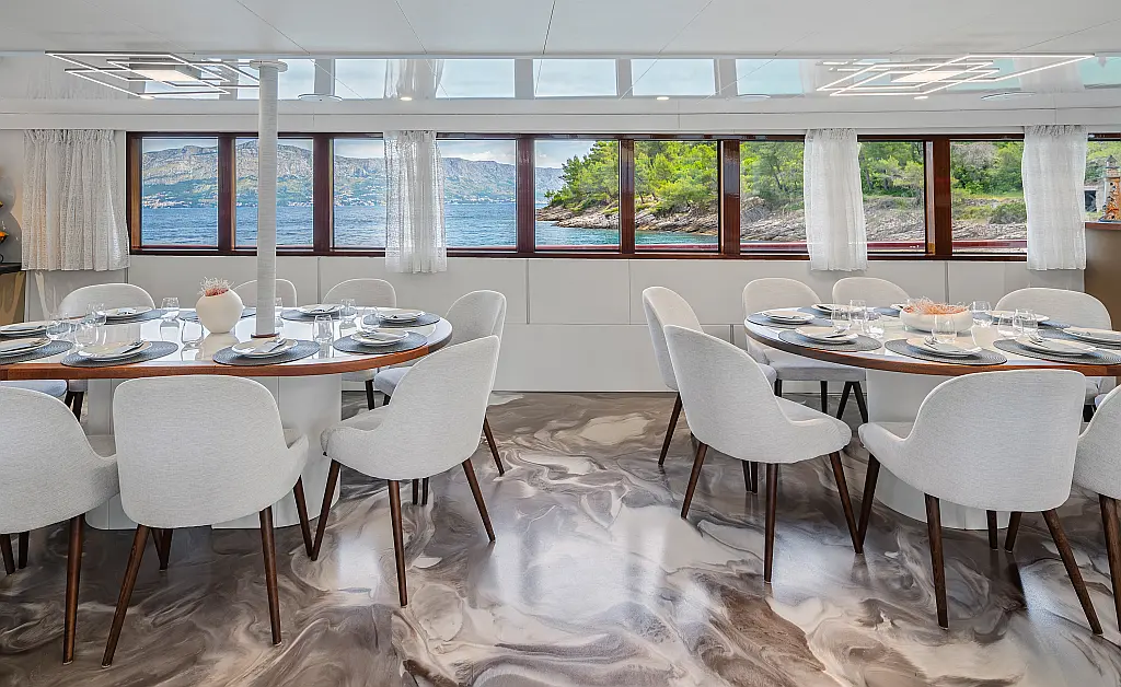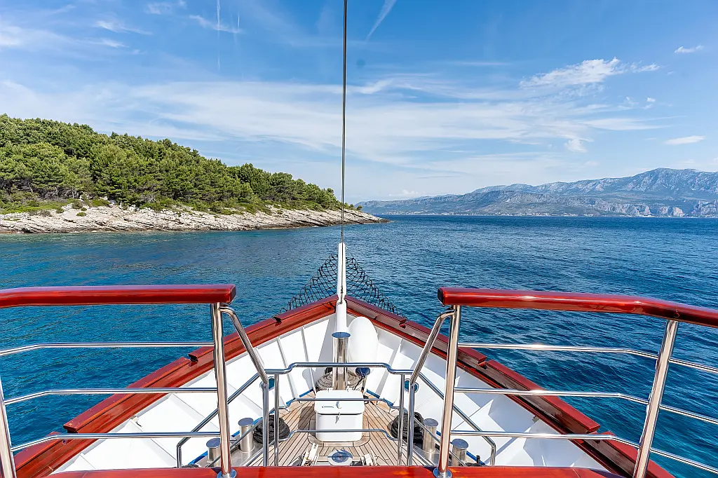 Stainless steel boarding ladder with irocco steps, Hidraulic steering system with steering position at bridge, Sun awning, Sun deck, shower