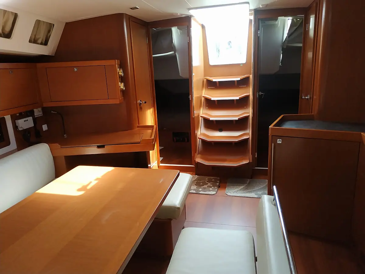 Spray Hood (true), Table cockpit, Bimini top, Fridge, Autopilot, Log + eco, Cable 220 + Battery Charger, Battery (4), Wind station, VHF, GPS Plotter, Stereo Cd Mp3+ I-pod, Anchor Windlass, Dinghy