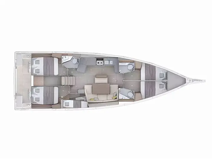 Anchor, Bimini top, Cockpit/stern, outside shower, Deck brush, Dinghy, Electric anchor windlass, Fenders, Folding cockpit table, Plastic bucket, Sprayhood
