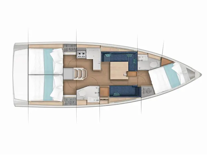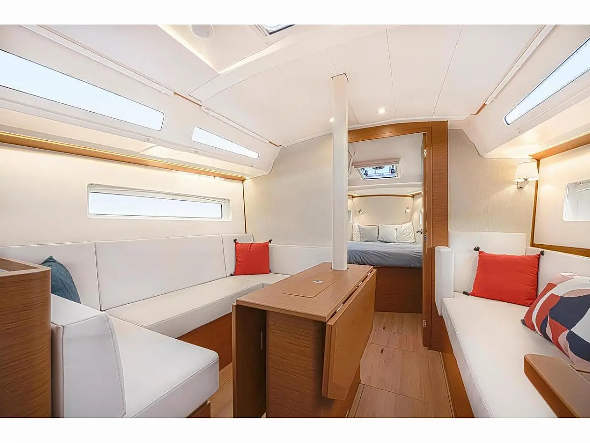 Teak in cockpit, USB (all cabins and saloon), Bimini, Sprayhood, Cockpit cushions, Gas, Deck shower, Cooker with oven (true), Pillows and Blankets, Electric WC (2), Fridge in saloon