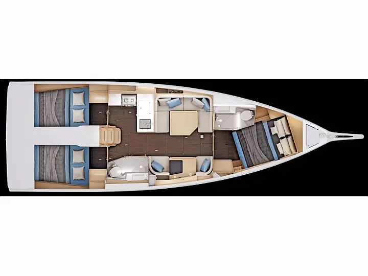 Dinghy, Outboard engine, Bimini, Cockpit cushions, Sprayhood, Teak Cockpit, Solar Panels, Refrigerator, Electric toilet