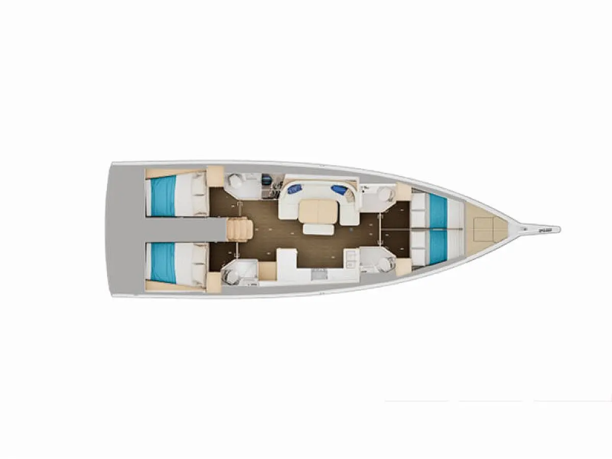 Wireless handset for Raymarine vhf at helm station, Electric windlass, Cockpit table, Roll Genoa, Profurl genoa furler, Cockpit bimini, Stemhead fitting, GRP cockpit table, Wooden helm seat extensions, Roll genoa, Classic mainsail, Seawater/freshwater foot pump, 220V shore power, USB plugs, 60A battery charger, Extra batteries, Fans, Shades, Wine storage locker under floorboards