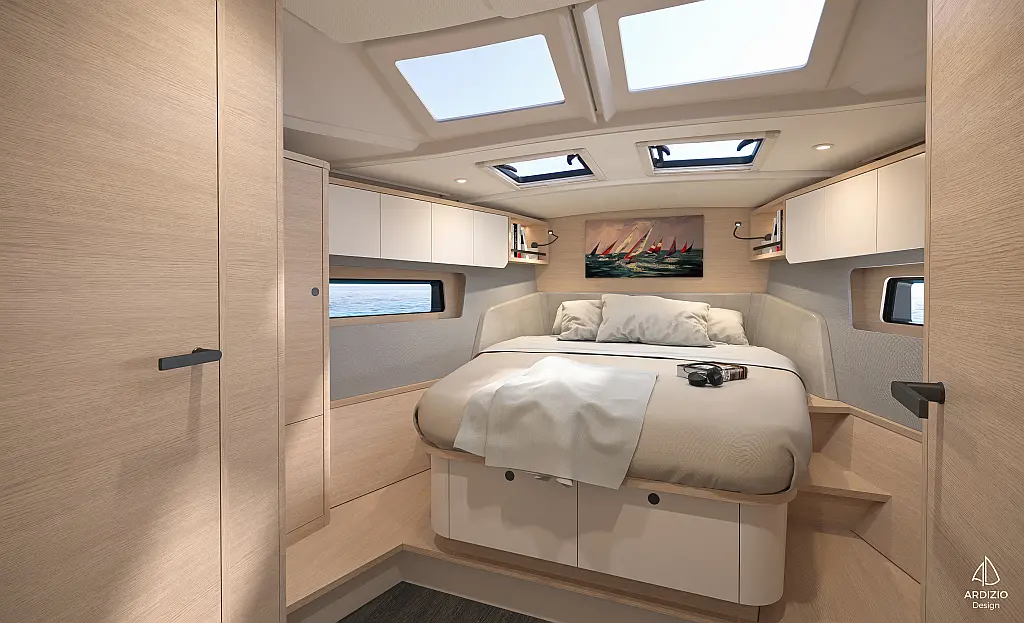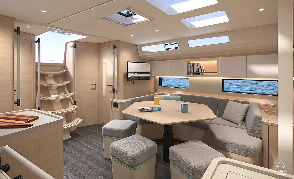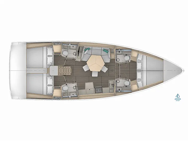 Bathing ladder, Gas bottles (Gas included), Electric windlass, Full batten mail sail, Lazy jack, 2 Steering wheels, Furling genoa, Lazy bag