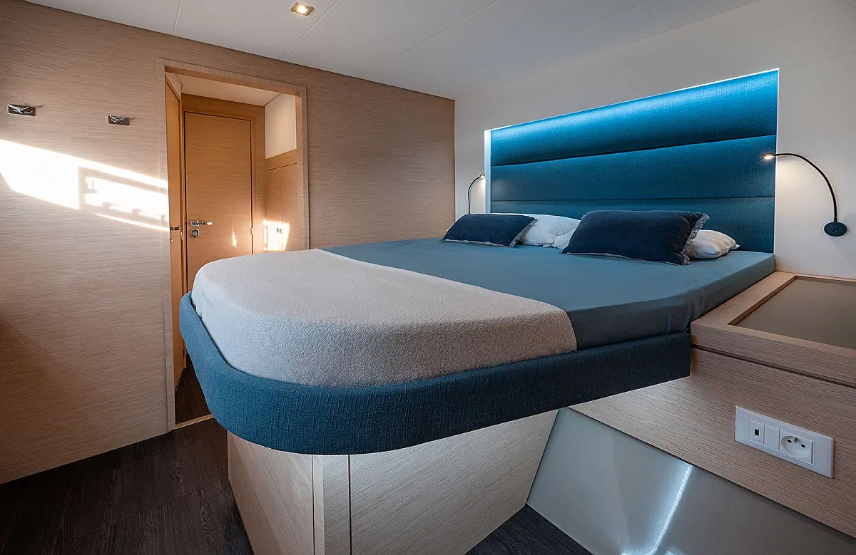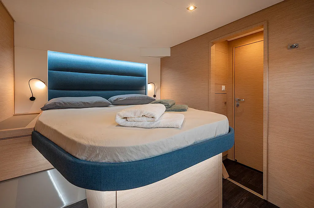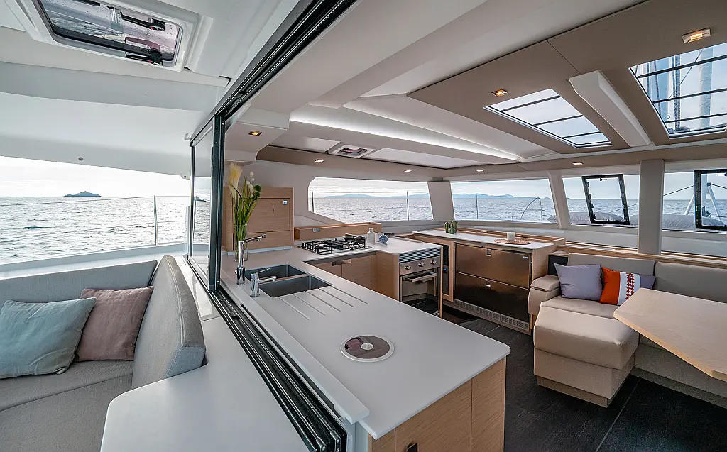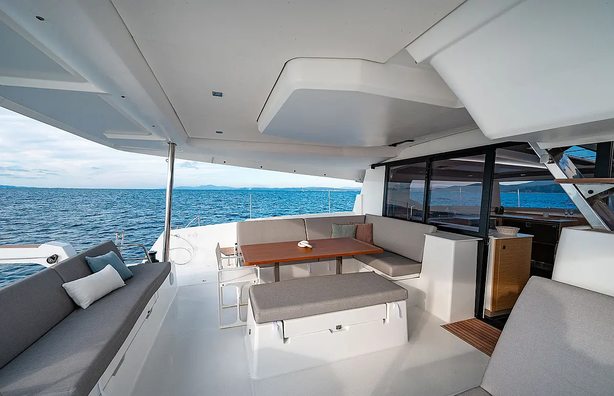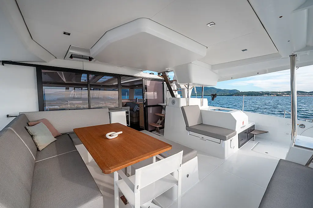 Inverter 220V, Micro-wave oven, Nespresso coffee machine, Outboard engine, Radio&Music player, Warm Water, Watermaker, Grill BBQ Gas - Integrated, Outdoor cushions (cockpit + lounge deck), Outdoor foredeck cushions, Saloon table convertible into bed