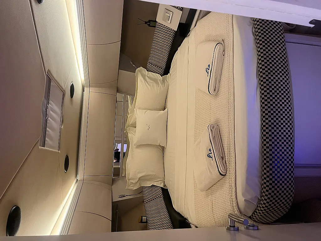 Bow thrust, TV, VHF, Fridge, Air condition, Microwave, Generator, Stereo surround system, Electric bilge pump, Manual Bilge pump, Heating, Inverter, Radar, Aft shower, Cockpit table, Sun cushions in stern, bow and in cockpit, Deep freezer, Swimming Ladder, Grill, Electric Platform, Stern thruster, Electric windlass, Bow solarium