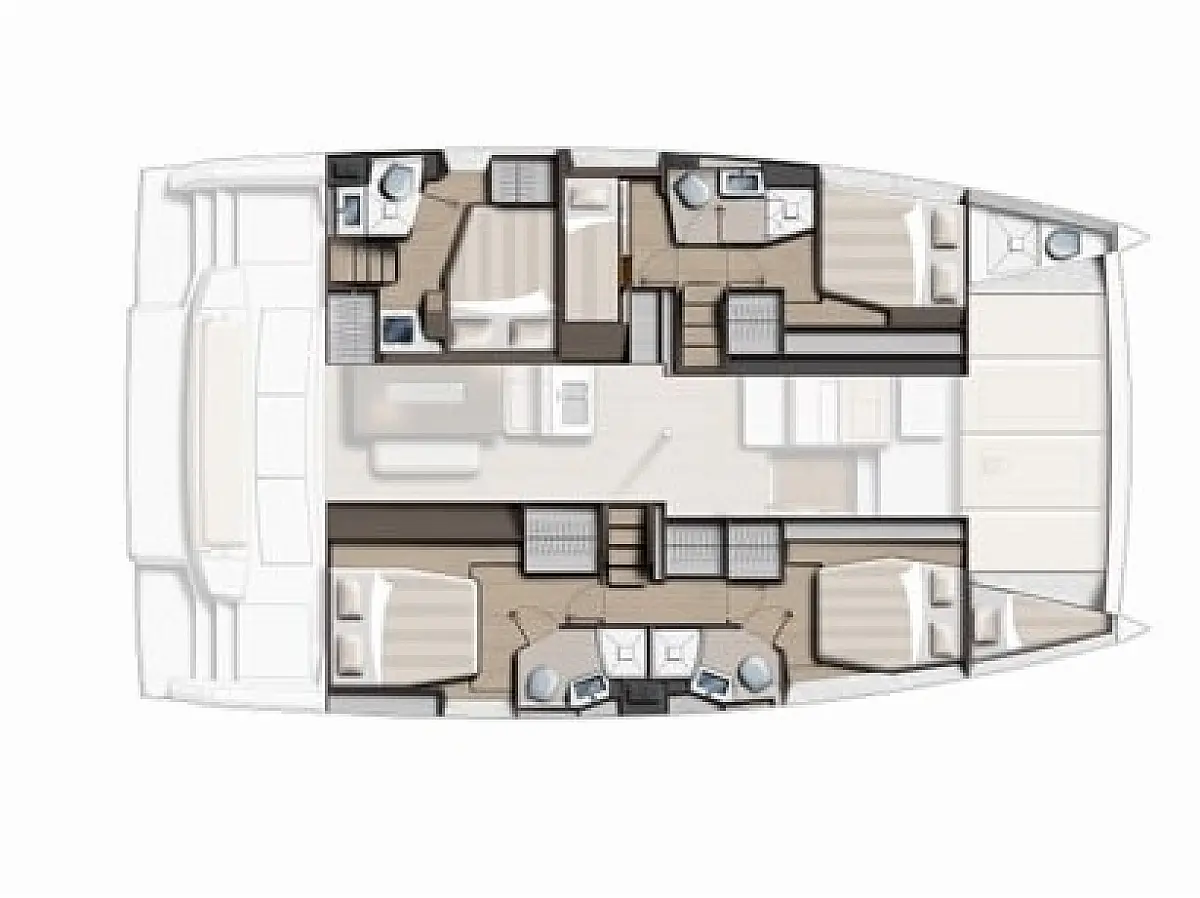 5 4 double cabins and 1 cabin with bunk bed, 1 Skipper Cabin