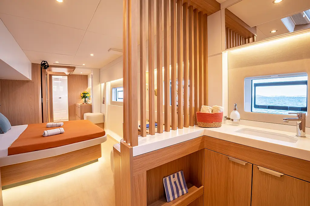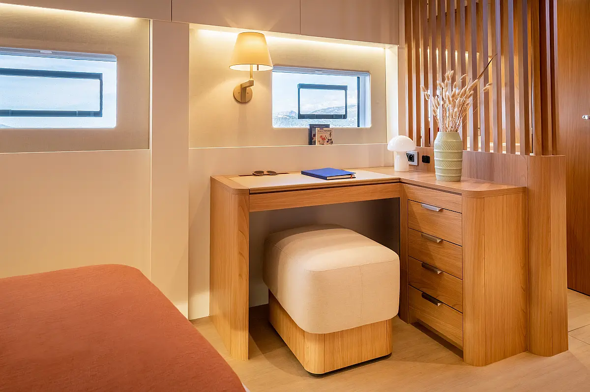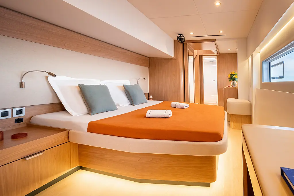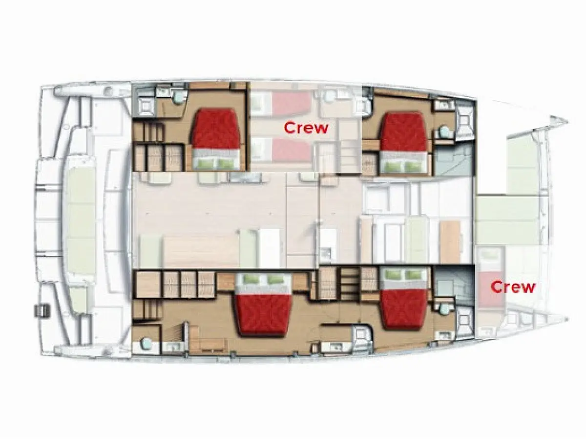 4 GUESTS: 1 master, 3 double cabins, 4 WCs; CREW: 1 twin cabin, 1 front peak, 2 WCs
