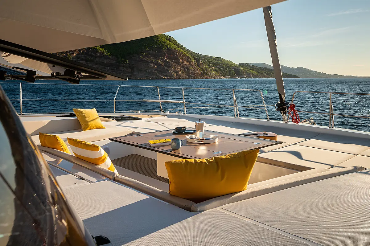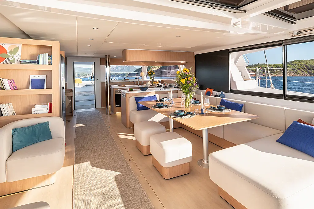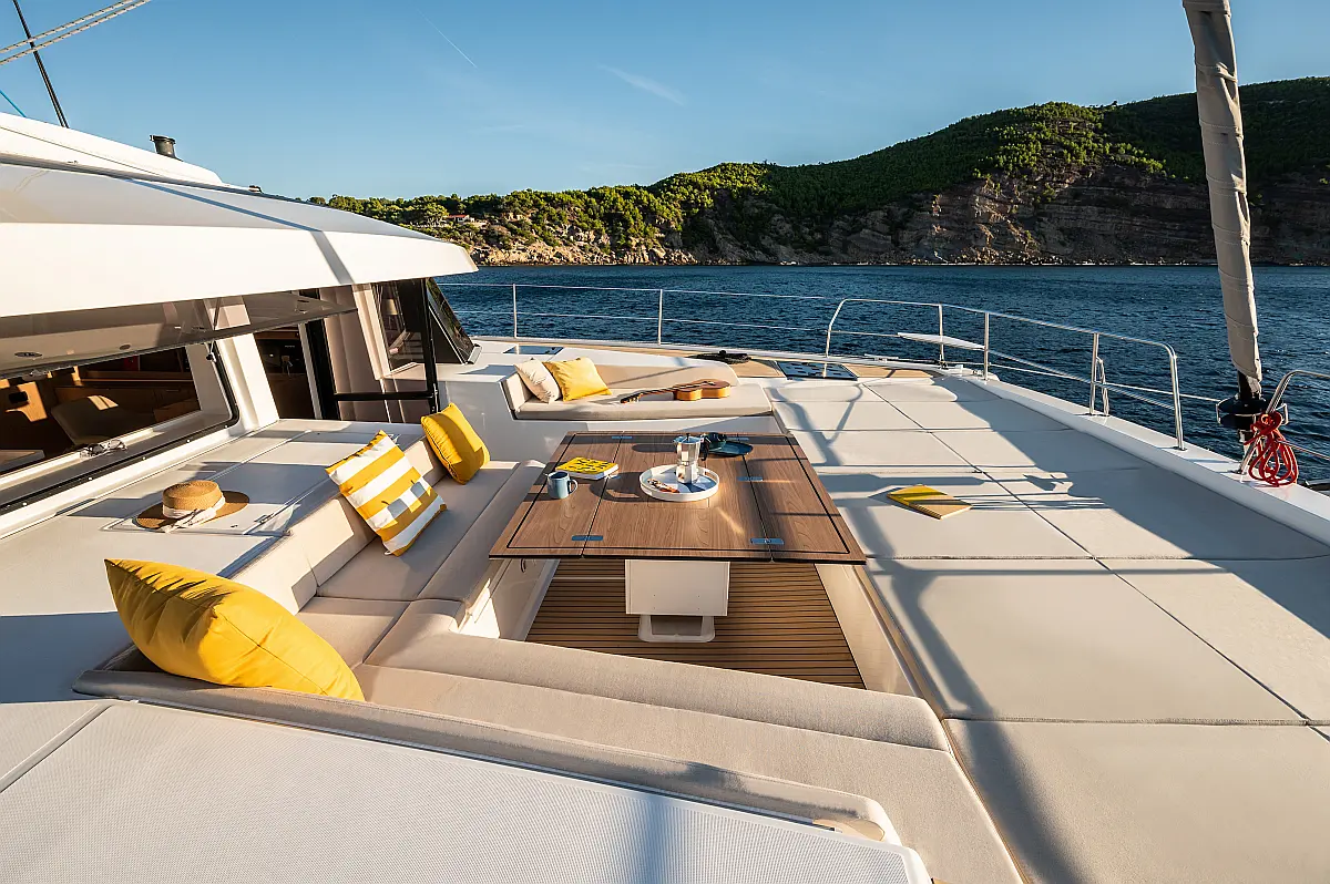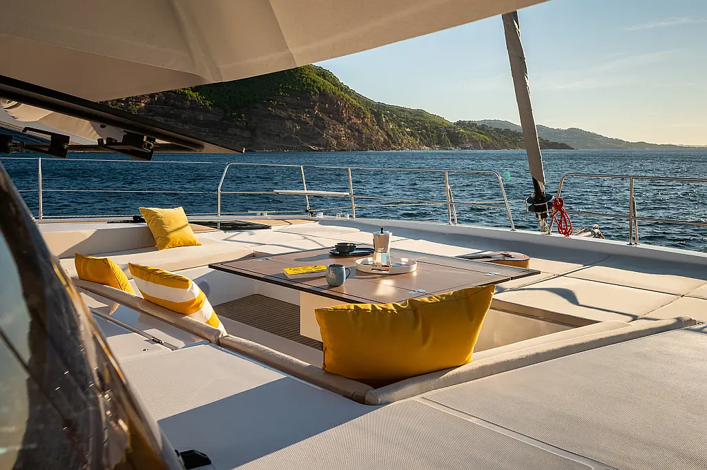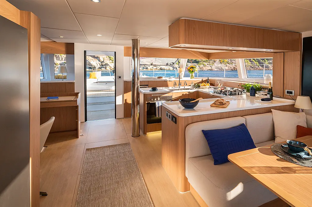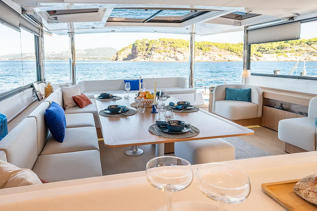 Inverter, Frigorifero, Cuscini in pozzetto, WC elettrico, Dissalatore, Macchina del ghiaccio, Pannelli solari, Altoparlanti in pozzetto, Aria condizionata, Verricelli elettrici, Ponte in Teak
