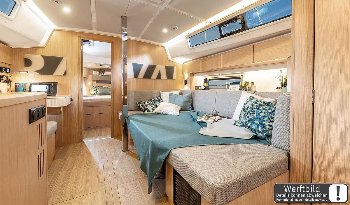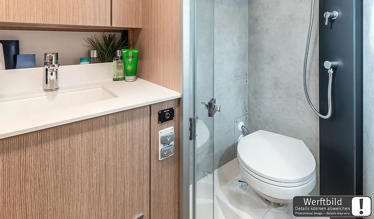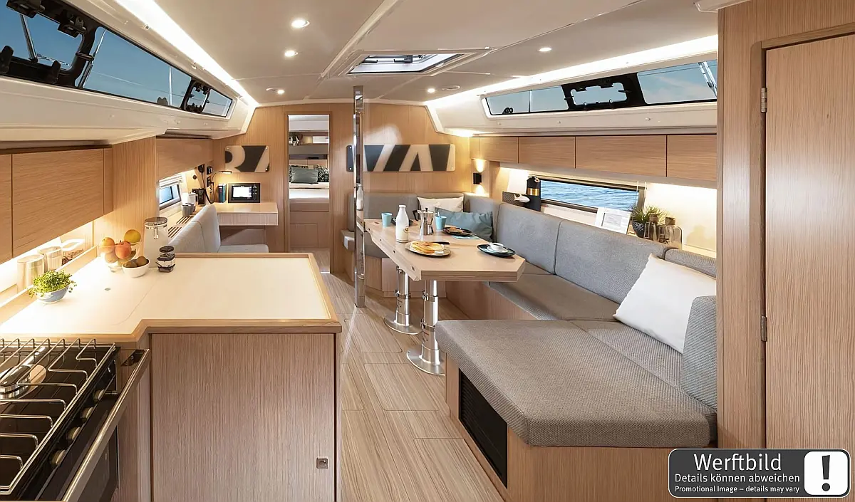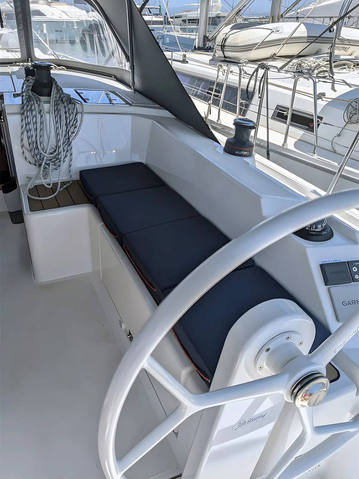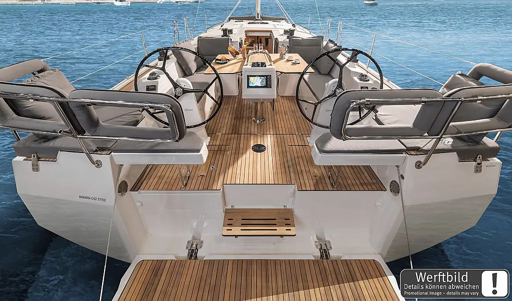 Bow thruster, Cockpit cushions, Cockpit table, Composite steering wheels, Teak bathing platform, Teak in cockpit, Steering position: 2, Rudder blades: 1