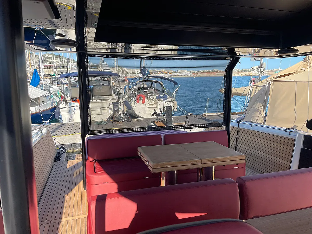 Cabin linen and towels, Teak deck, Hydraulic side platform, VHF, Refrigerator, Radio, Ice maker, Air condition