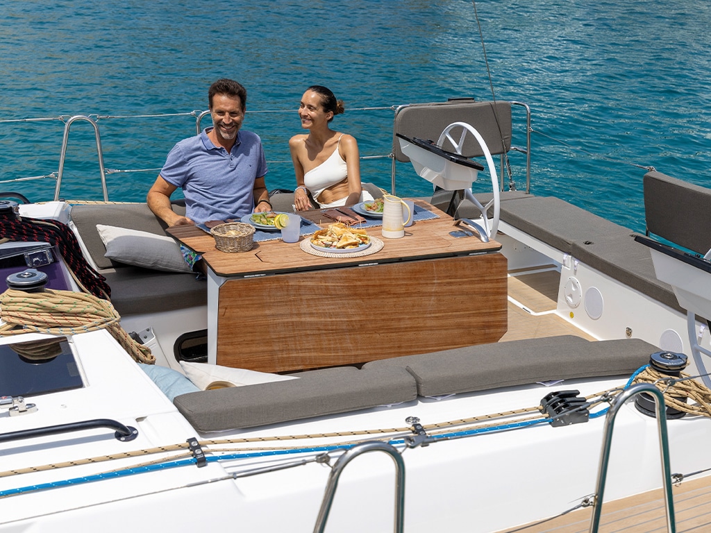 2 helm stations, Aluminium Gangway, Barbeque, Bathing platform lowerable (manual), Cockpit cushions, Cockpit lighting LED, Cockpit table, Stern shower (hot/cold), Wetbar