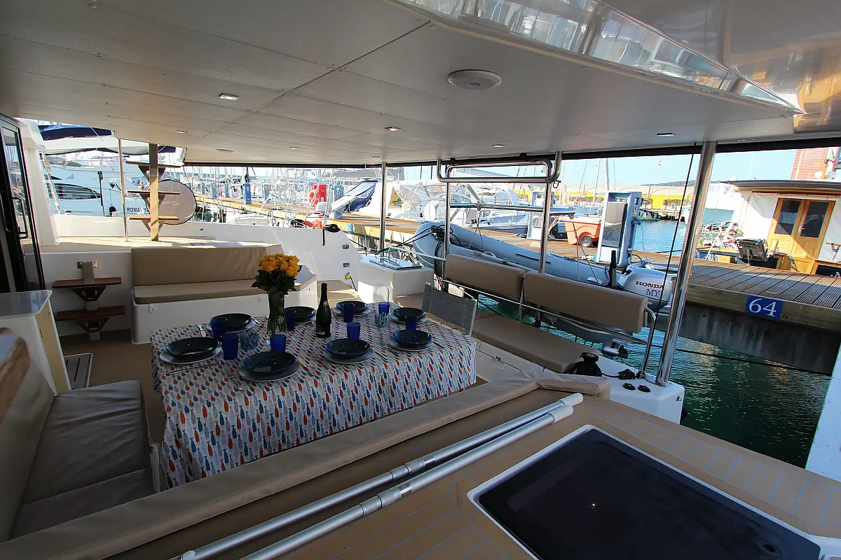 2 start batteries 12V – 50A, 220V – AC Circuit, 3 service batteries, DC Power Circuit (12 V), Diesel generator 15 Kw/h, General control panel 12V at chart table with circuit breaker protection, USB socket 12V in every cabin, USB socket 12V in the saloon