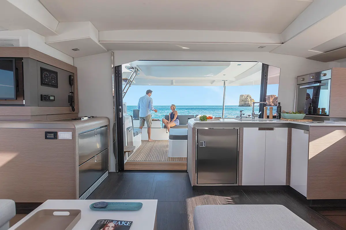 VHF, Radar, Watermaker, Solar panels, Autopilot, Bimini, Cockpit cushions, Gennaker, Lazy jack, Mooring kit + 6 fenders, Electric Windlass, Lazy bag, Teak cockpit, Cockpit refrigerator, AIS, Washer/dryer, Refrigerator, Freezer, Fusion audio system, Dinghy, Inverter, Hot water, Heating, Electric mainsail winch, Cockpit tent, Built-in gas grill, Automatic mainsail hook, 12V socket, Detachable Self-priming bilge pumps, Saloon table convertible into a bed, Electric toilet