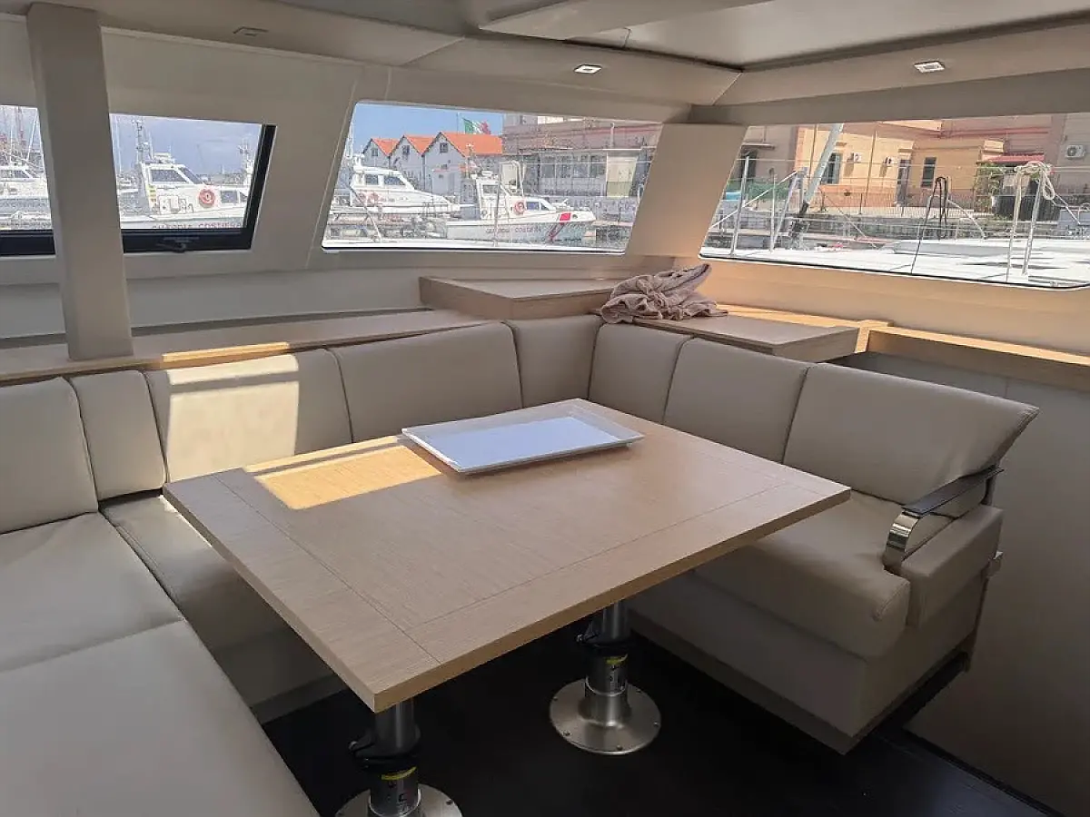 Safety equipment, Water purifier, Electric toilet, Electric winches, Manual winches, Lazy jack, Lazy bag, 220V outlets in cabins and saloon, BBQ grill, Water tanks plus black water tanks, Teak in cockpit, External speakers, Hot water, Convertable table in the saloon, External shower, Inverter, Internal speakers, 220V electrical system, Air conditioning, Autopilot, Stove, Kitchen utensils, Oven, Cushions and blankets, Refrigerator, Audio system, Generator, Heating, Flybridge, GPS chart plotter - cockpit, Wind/speed/depth instruments, Shore connection 220 V, Dinghy, Gas bottles, Electric anchor windlass, Solar panels, Watermaker - desalinator, Galley in cockpit, Additional fridge