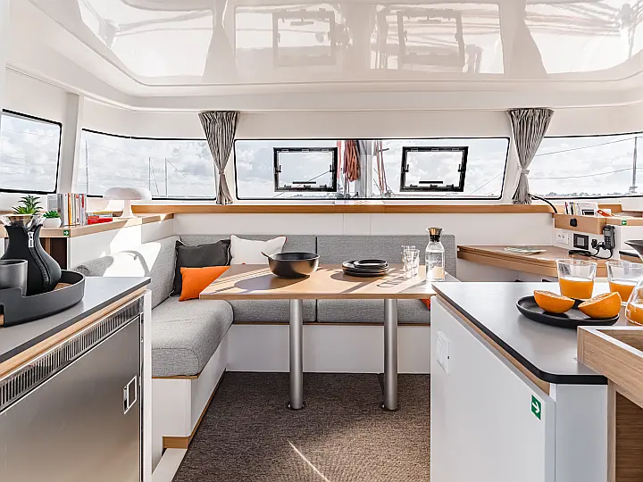 Hot water, Kitchen utensils (Galley equipment, cutlery), Oven, Refrigerator, Stove
