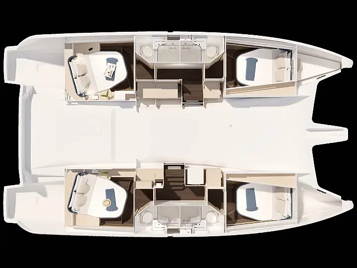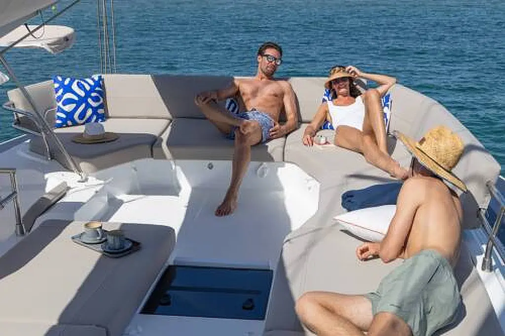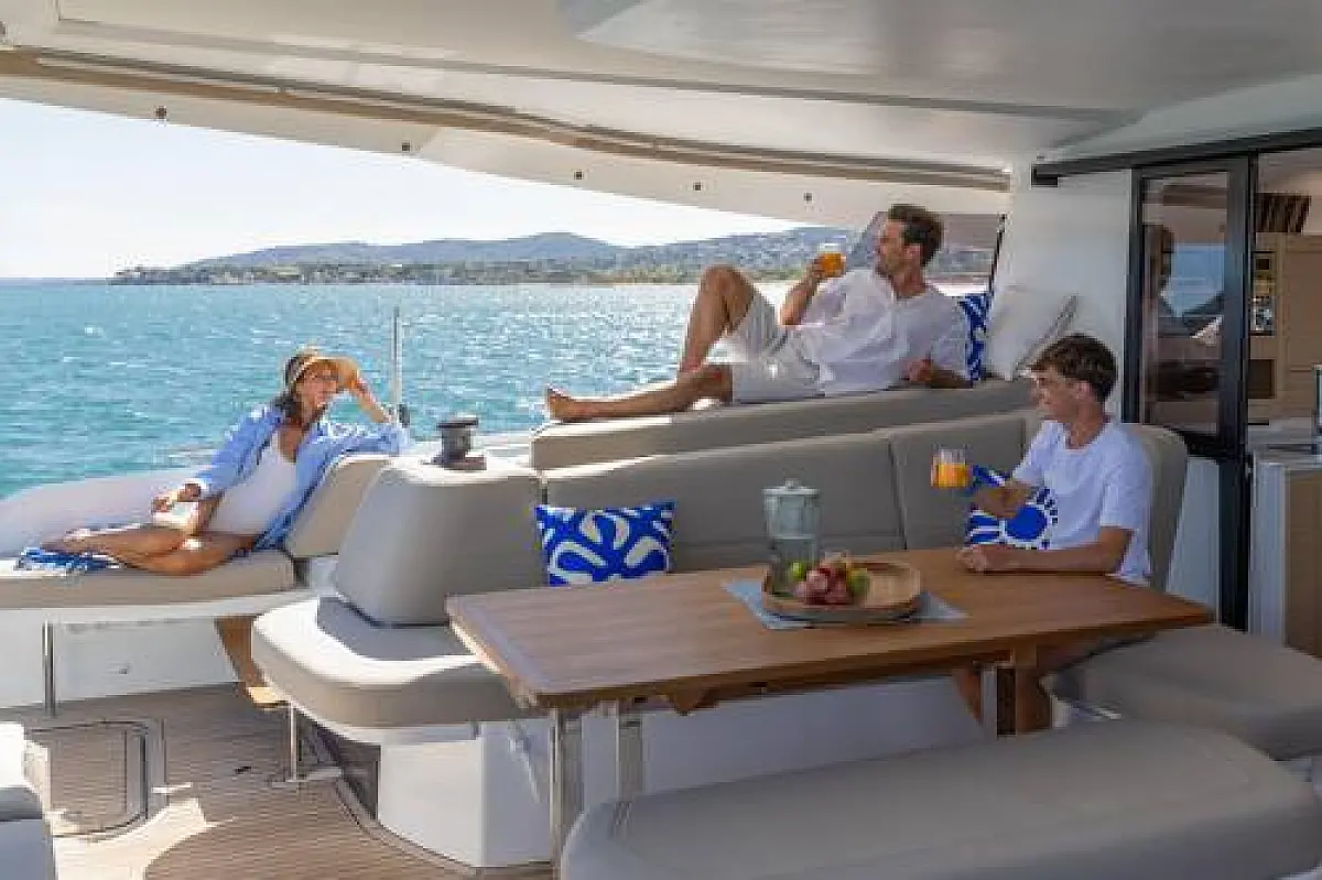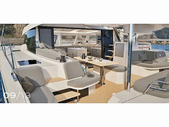 1 helm station, Aluminium Gangway, Barbeque, Bimini, Cockpit cushions, Cockpit lighting LED, Cockpit table, Cockpit table extension, Double rudder system, Electrically lowerable bathing platform, Fridge in cockpit, Solarium pads, Stern shower (hot/cold), Sun pad