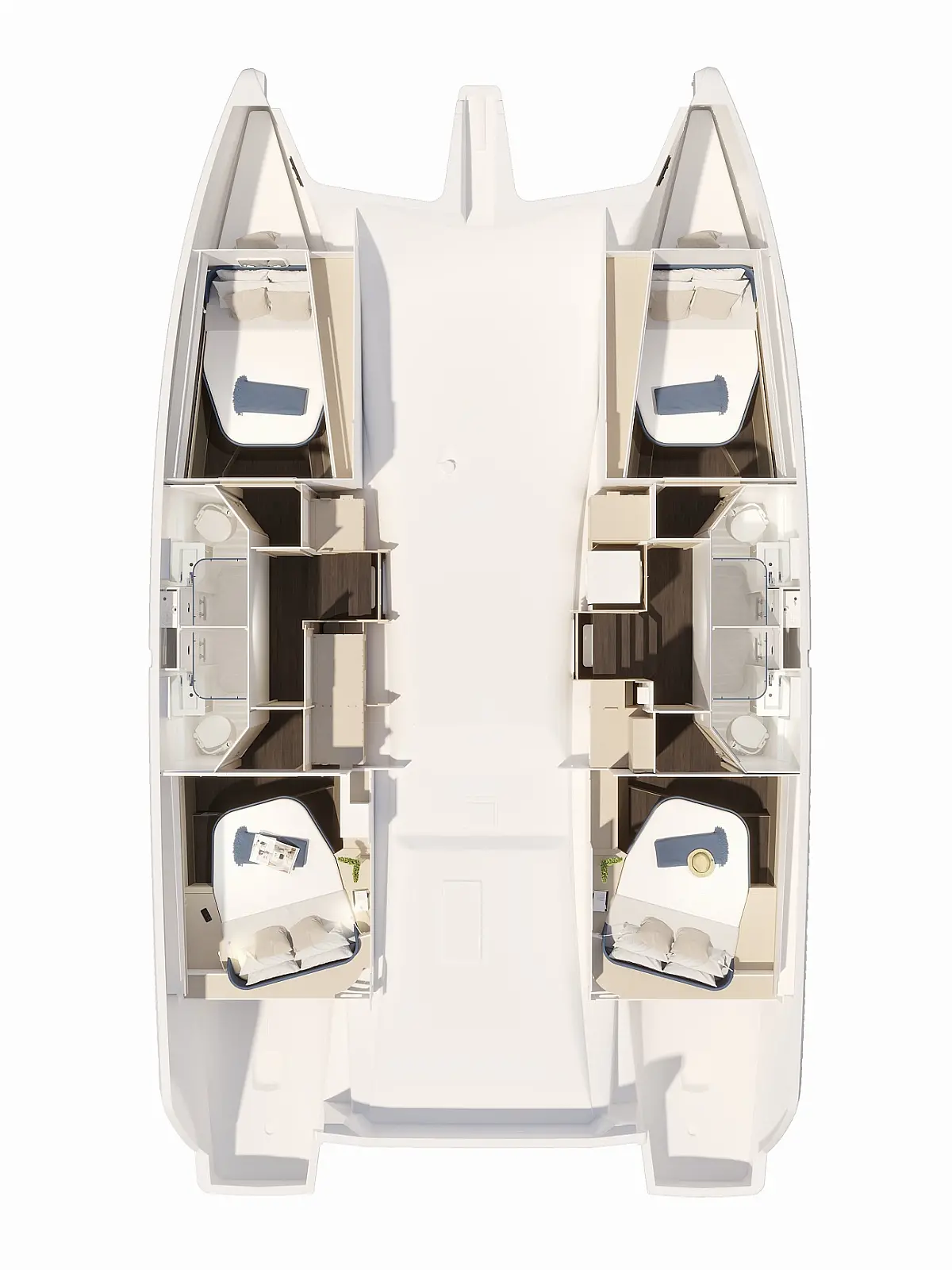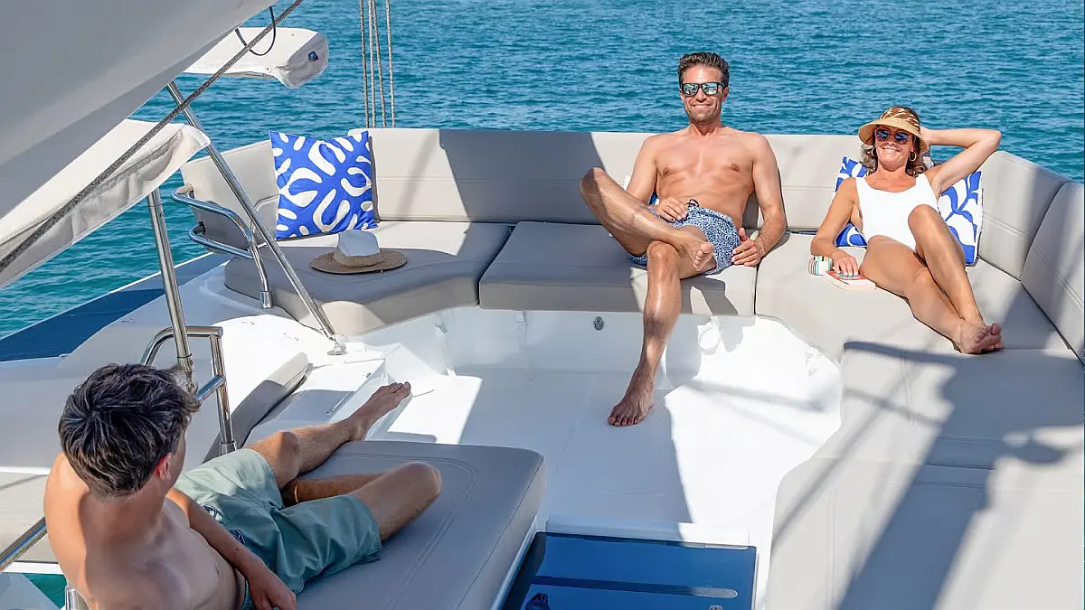 Bimini, Frigorifero, Barbecue in pozzetto, Tender, Teak in pozzetto , Macchina da caffè, Aria condizionata, Verricelli elettrici, Generatore, Riscaldamento, Pannelli solari, Cuscini in pozzetto