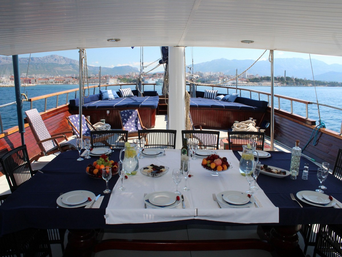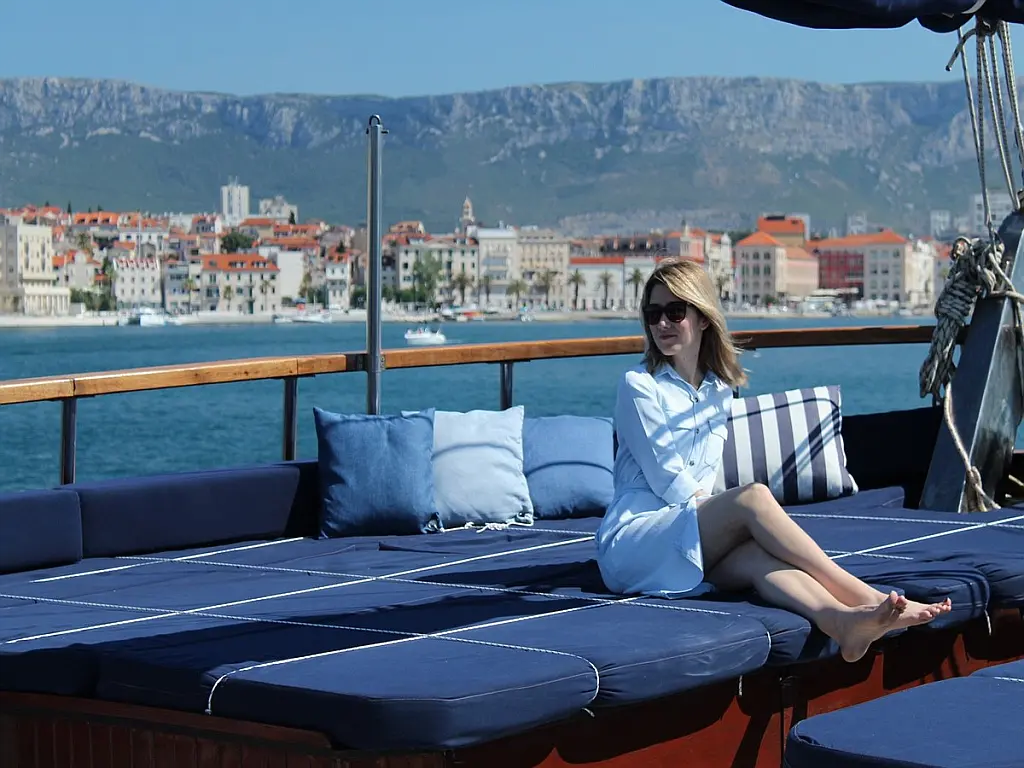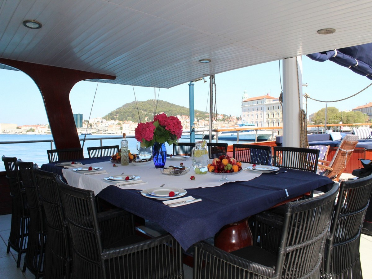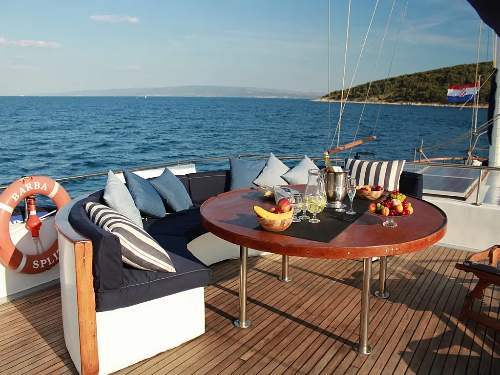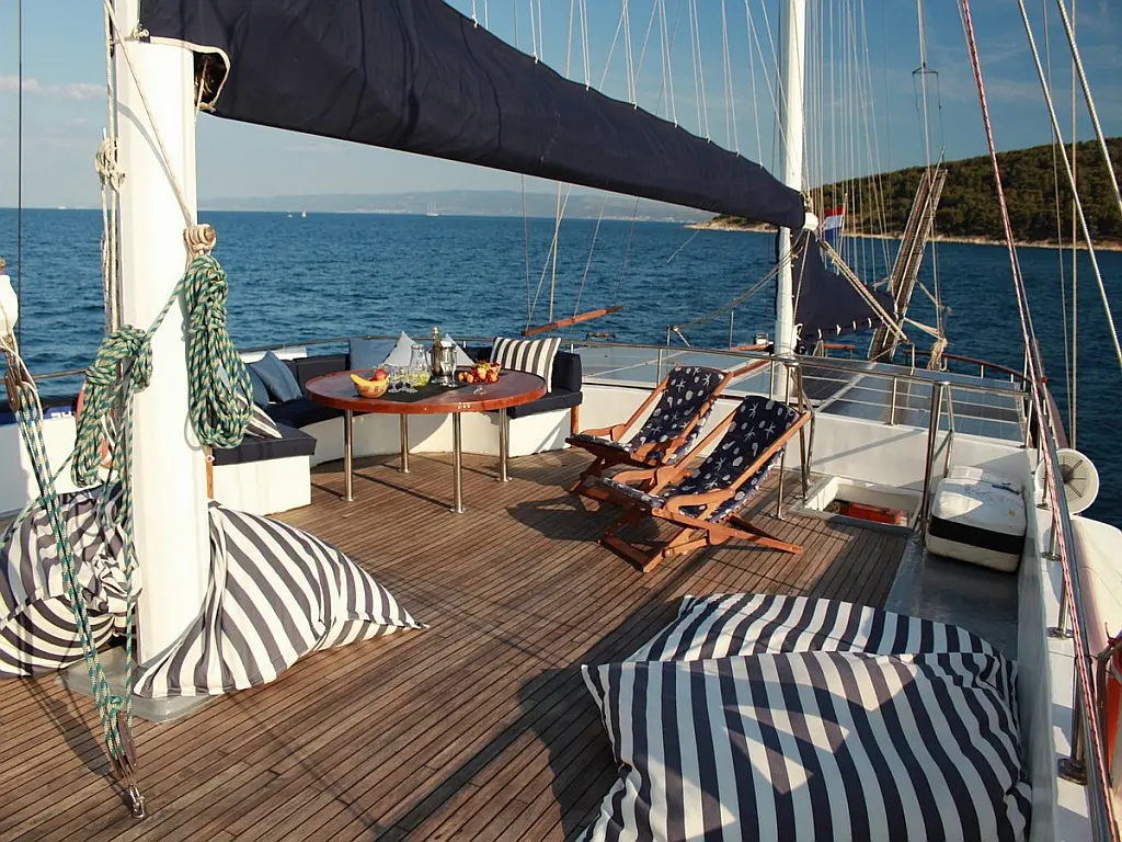 Sunbathing area, Cockpit table, Sunbathing cushions, Sun Tent (true)
