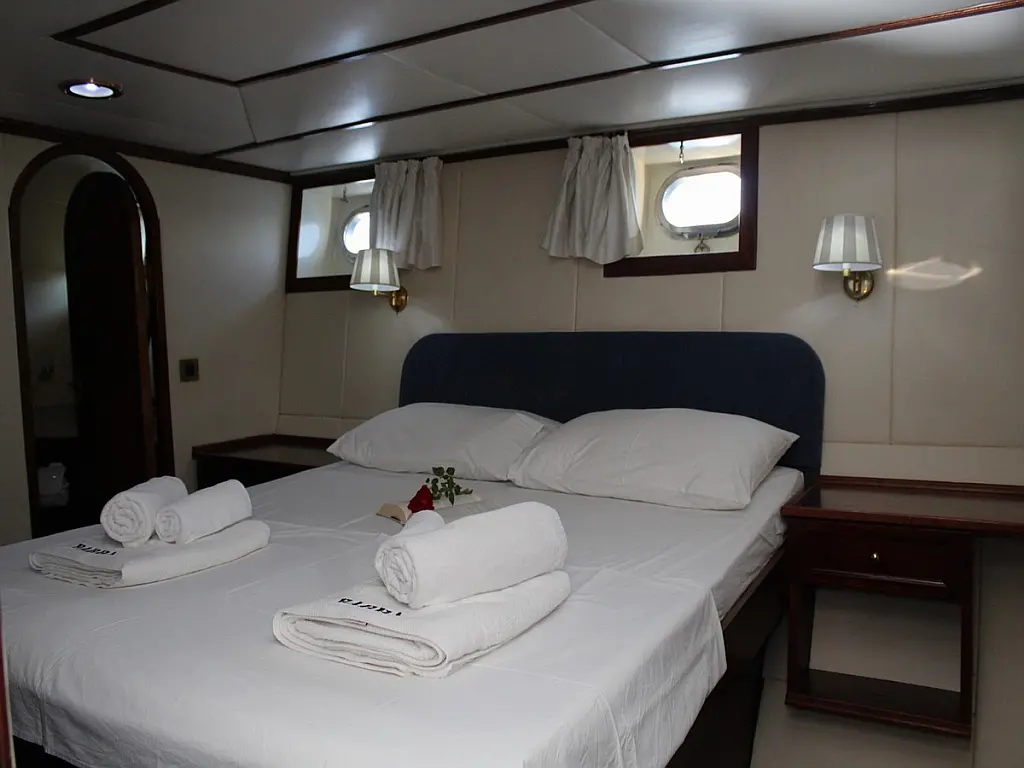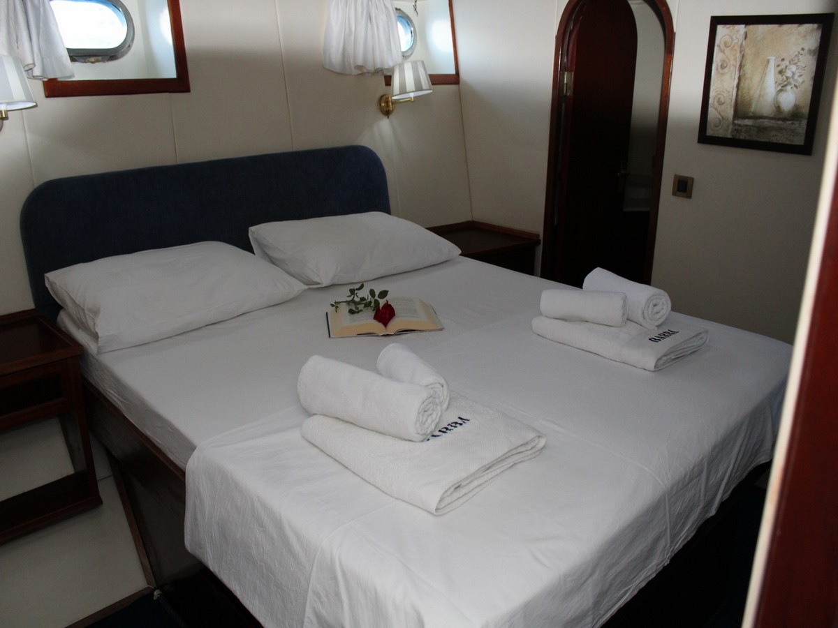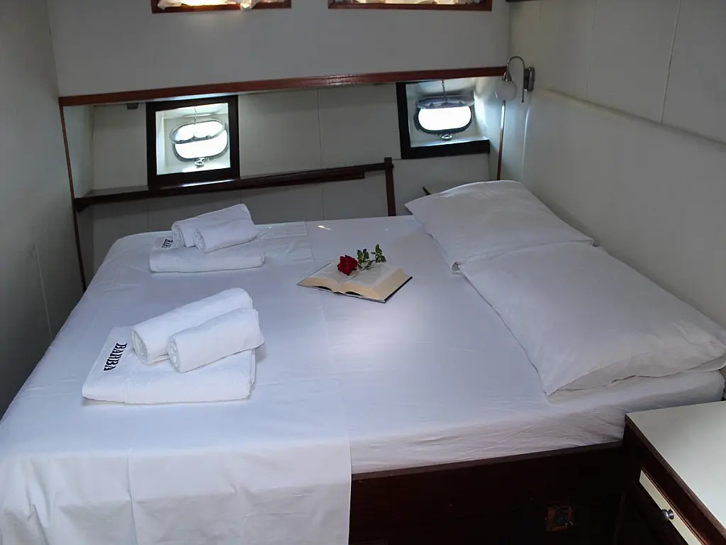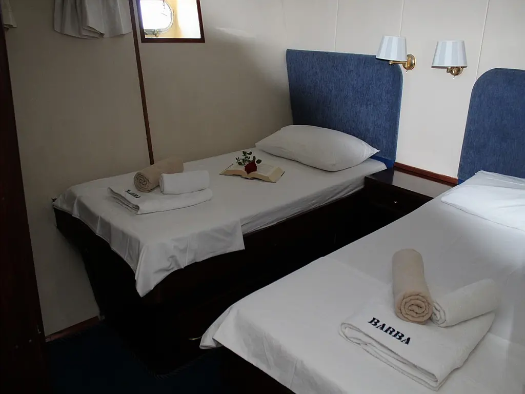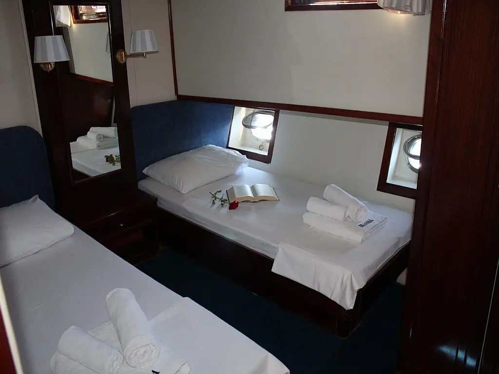 Double bed cabin (4), Pillows (true), Bed linen (true), Blankets (true), Towels, Sheets, Twin bed cabin (3)