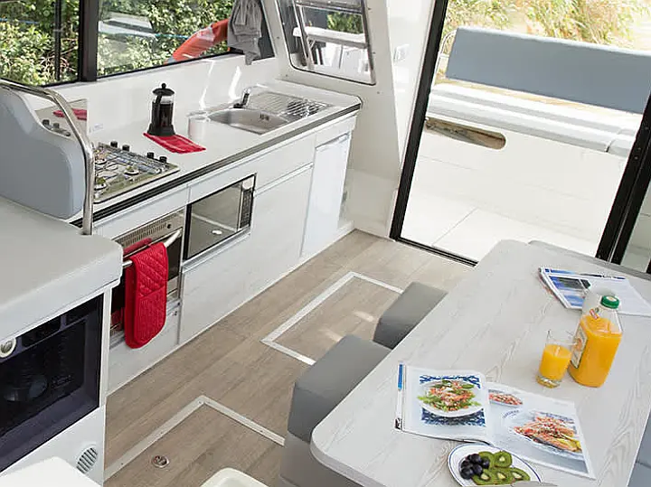 Sun shade (Bimini), Deck Shower, Alfresco dining, Ambient light, BBQ / Plancha, Portable cool box, Sundeck