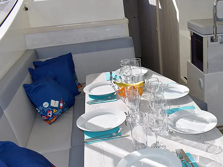 Sun shade (Bimini), Deck Shower, Alfresco dining, Ambient light, BBQ / Plancha, Portable cool box, Sundeck