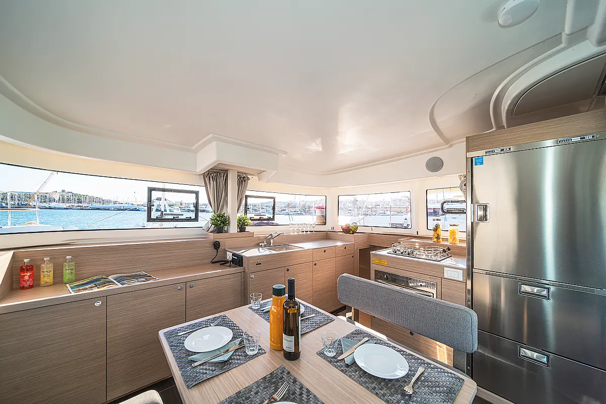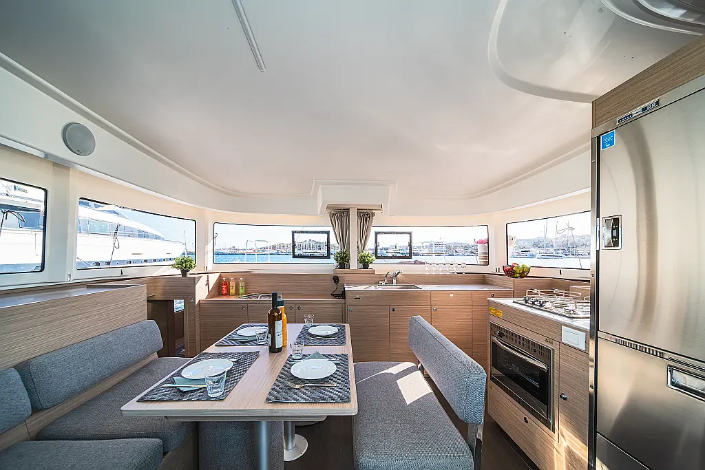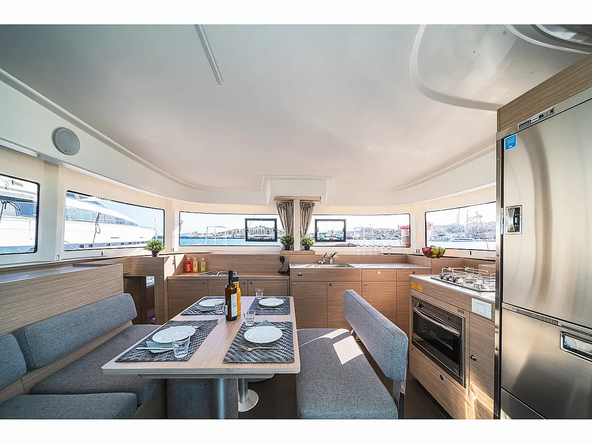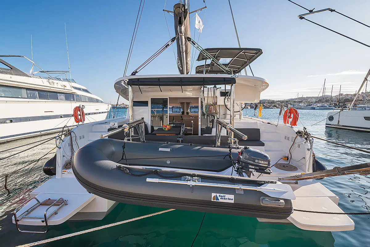 Anchor Spare, Boat Hook, Dinghy Oars & Locks, Deck Brush, Diesel Canister, Dinghy Pump, Dinghy Seat, Engine Oil Spare, Fuel funnel, Gas Bottles, Mooring Ropes 25m, Mooring Ropes 50m, Outboard Motor Jerry Can (TRUE), Plastic Bucket, Ropes Spare, Shore Power Cable, Shore Power Cable & Adaptors, Snorkeling Sets, Water Hose & Adaptors, Liferaft